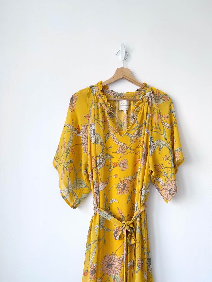 Sukienka duńskiej marki Part Two. Dekolt jest zapinany na guzik, sukienka ma halkę oraz pasek. Rozmiar z metki 44. Idealny stan.