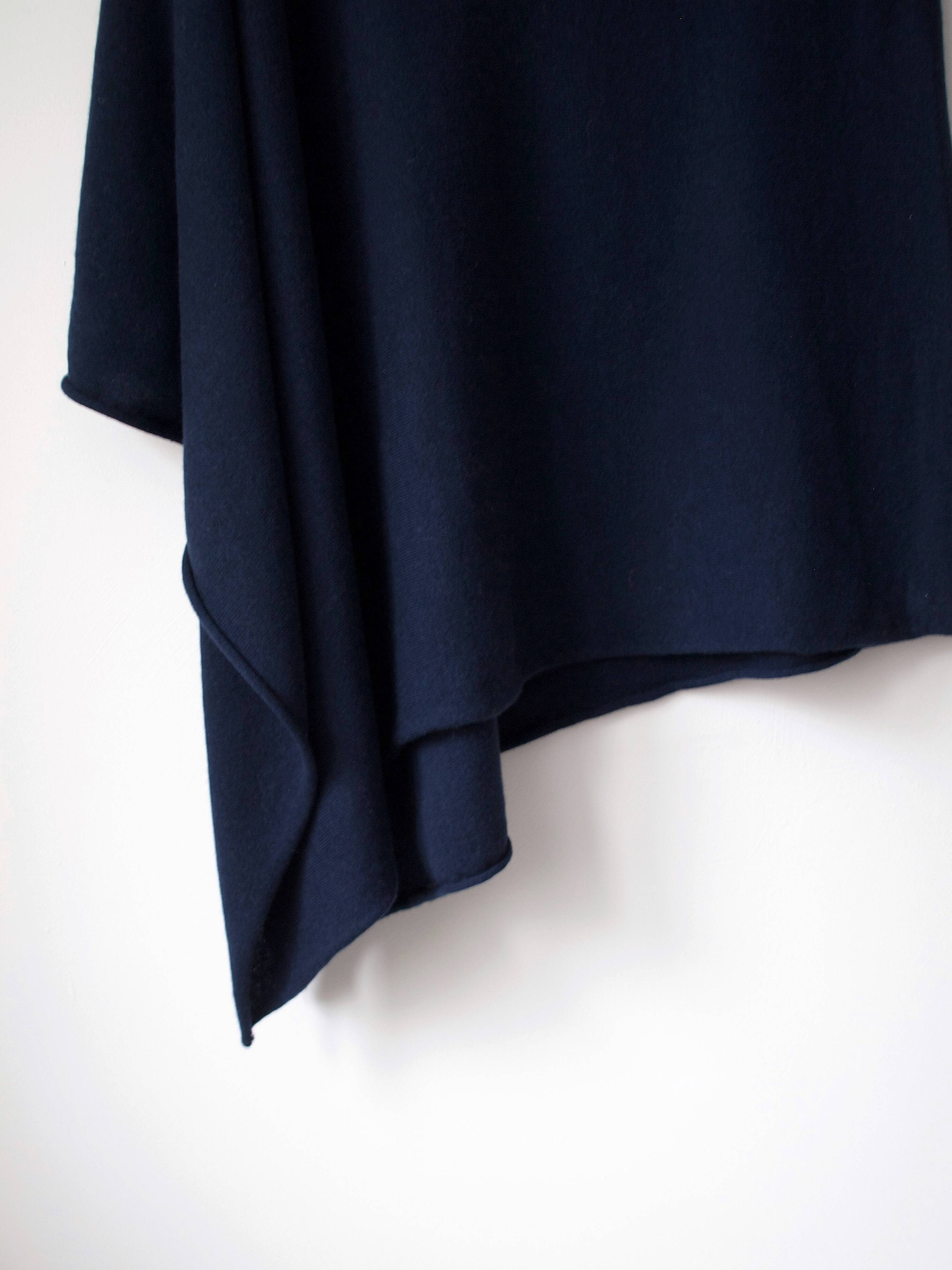 Minimalistyczny kaszmirowy sweter o pudełkowym kroju. Sweter bardzo miękki i przyjemny, ma dwie małe zacerowane dziurki, nie widoczne w noszeniu, poza tym brak mankamentów. Wymiary poniżej.