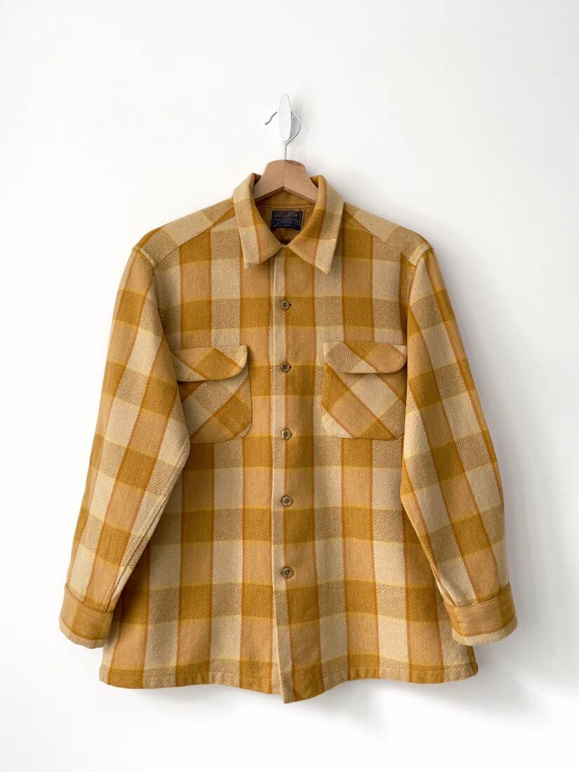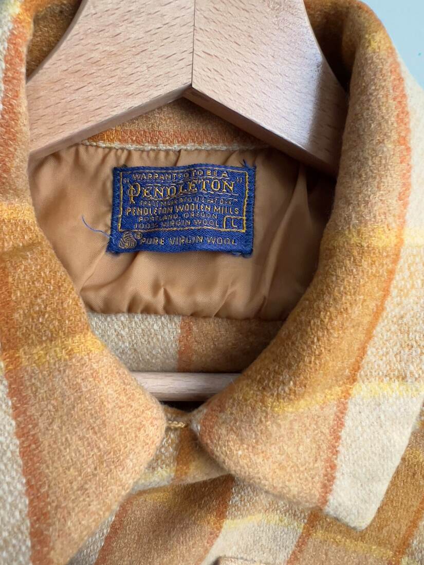 Koszula amerykańskiej marki Pendleton. Model vintage, prawdopodobnie pochodzi z lat 70-ch. W 100% wykonana z wełny dziewiczej, może być noszona jako okrycie wierzchnie. Rozmiar z metki L, bez wad.