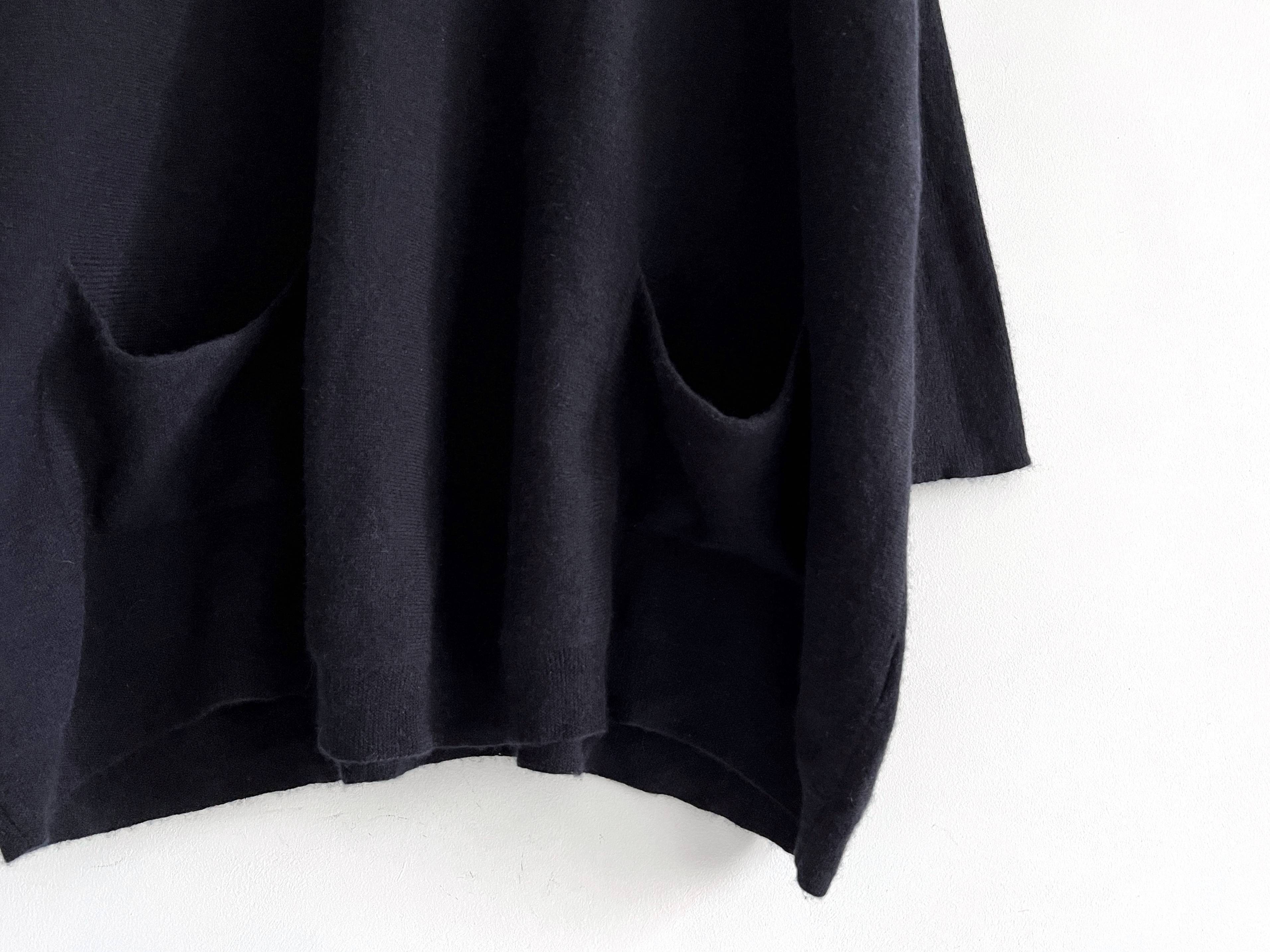 Sweter o obszernym pudełkowym kroju. Kolor to ciemny granat, prawie czarny.