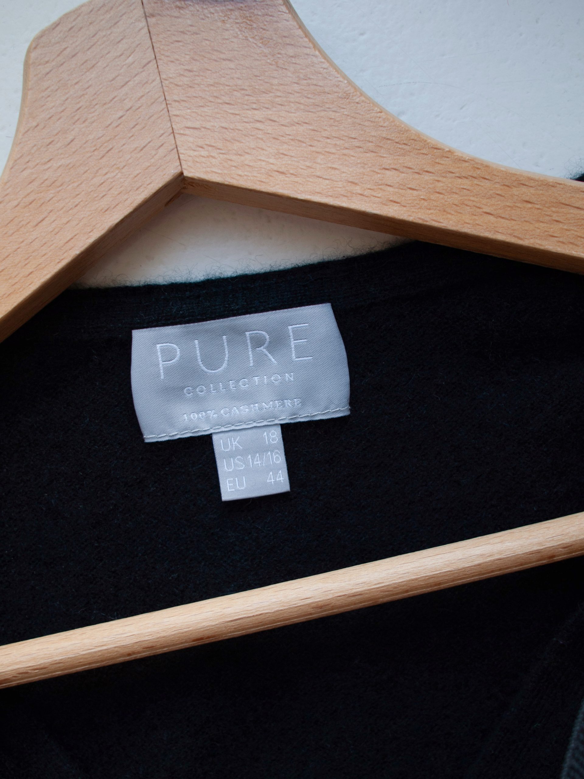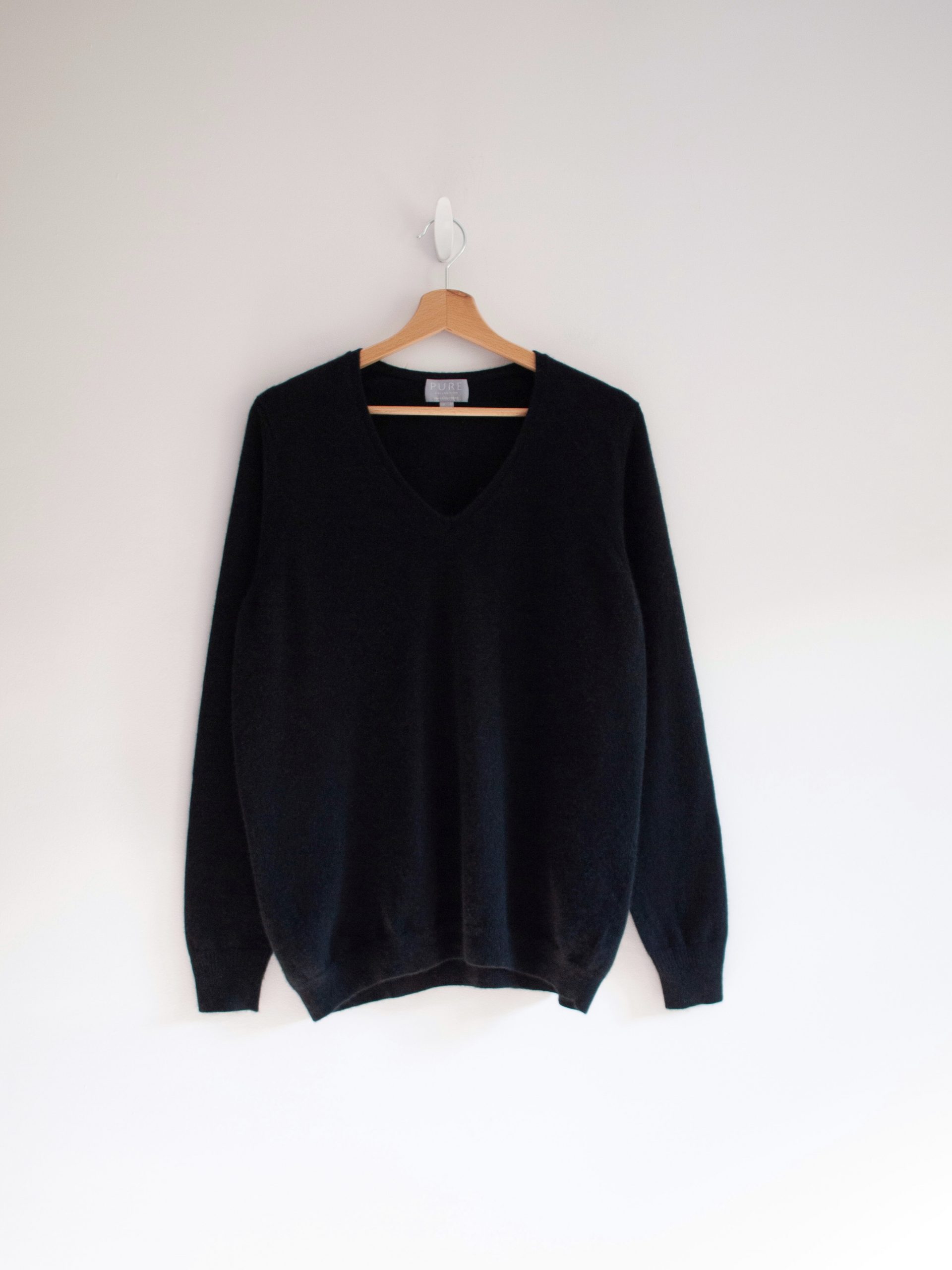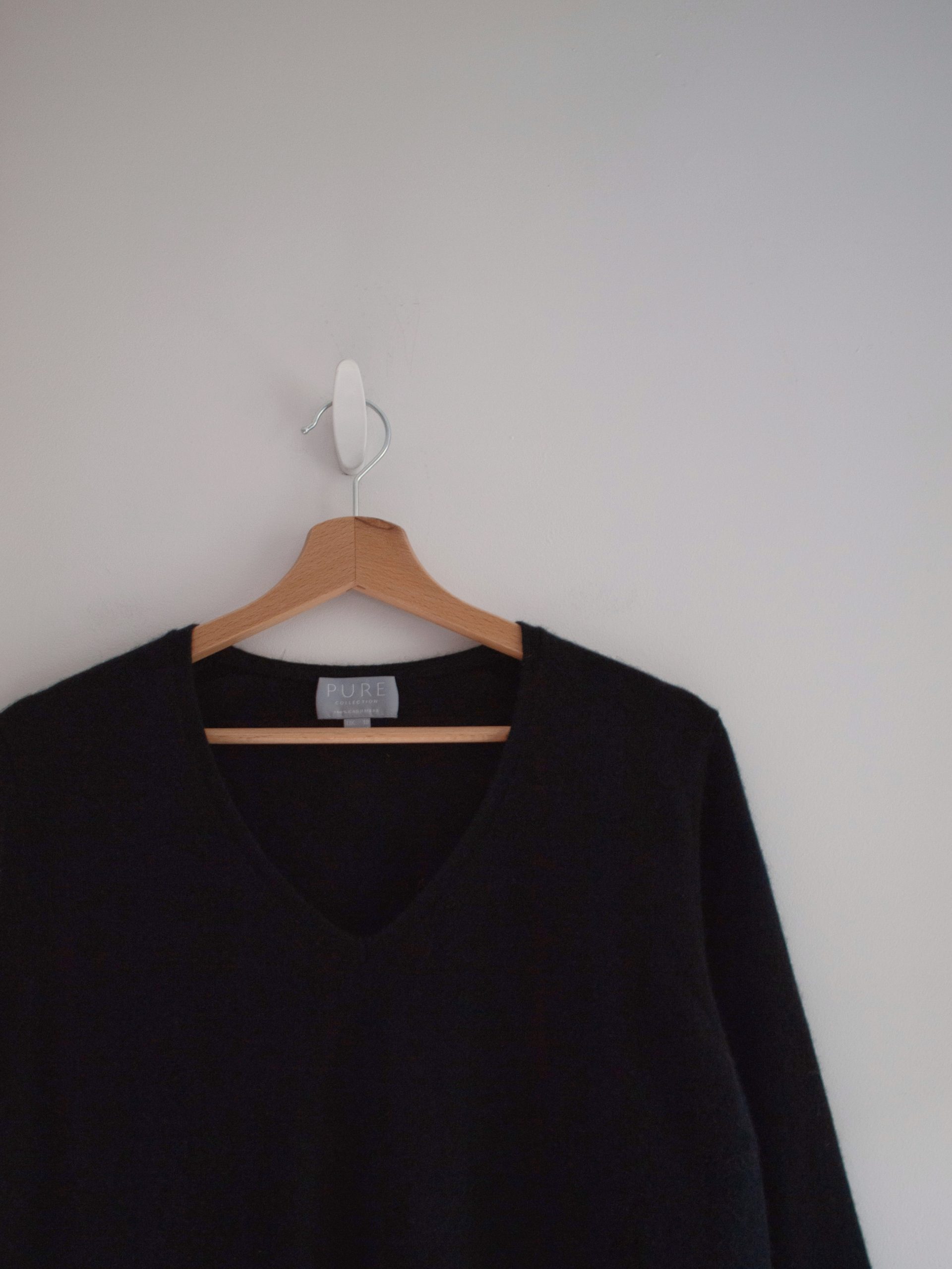Bardzo miękki i puszysty sweter o klasycznym, ponadczasowym fasonie. Rozmiar z metki: 44 Skład: 100% kaszmir Stan: idealny Szerokość w klatce 52 cm Długośćcałkowita 65 cm
