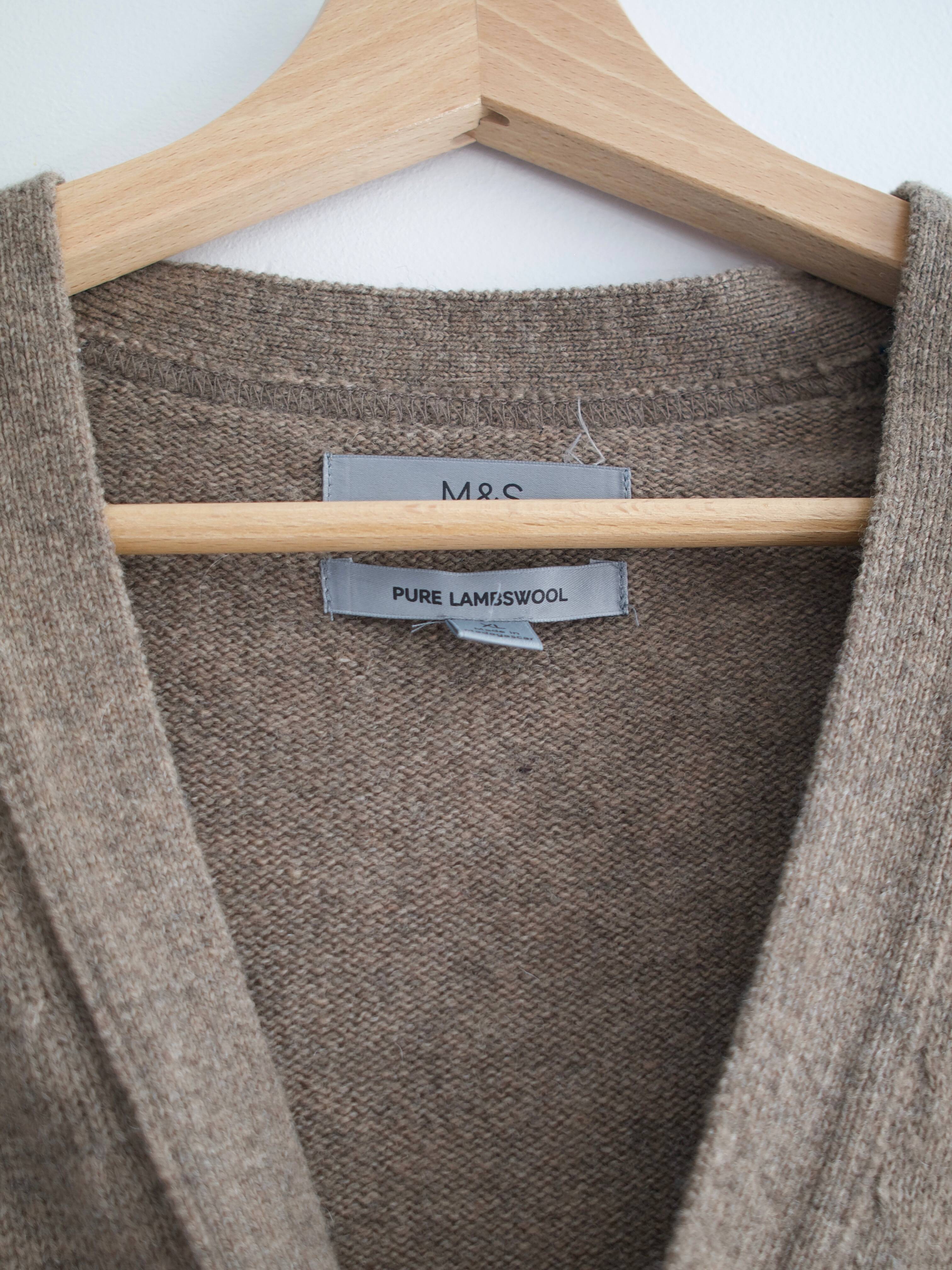 Przepiękny wełniany sweter brytyjskiej marki WoolOvers. Rewelacyjny skład 70% merino wool, 30% kaszmir, jest miękki i milutki w dotyku. Rękawy i dół wykończone dłuższym ściągaczem. Rozmiar z metki S, idealny stan.