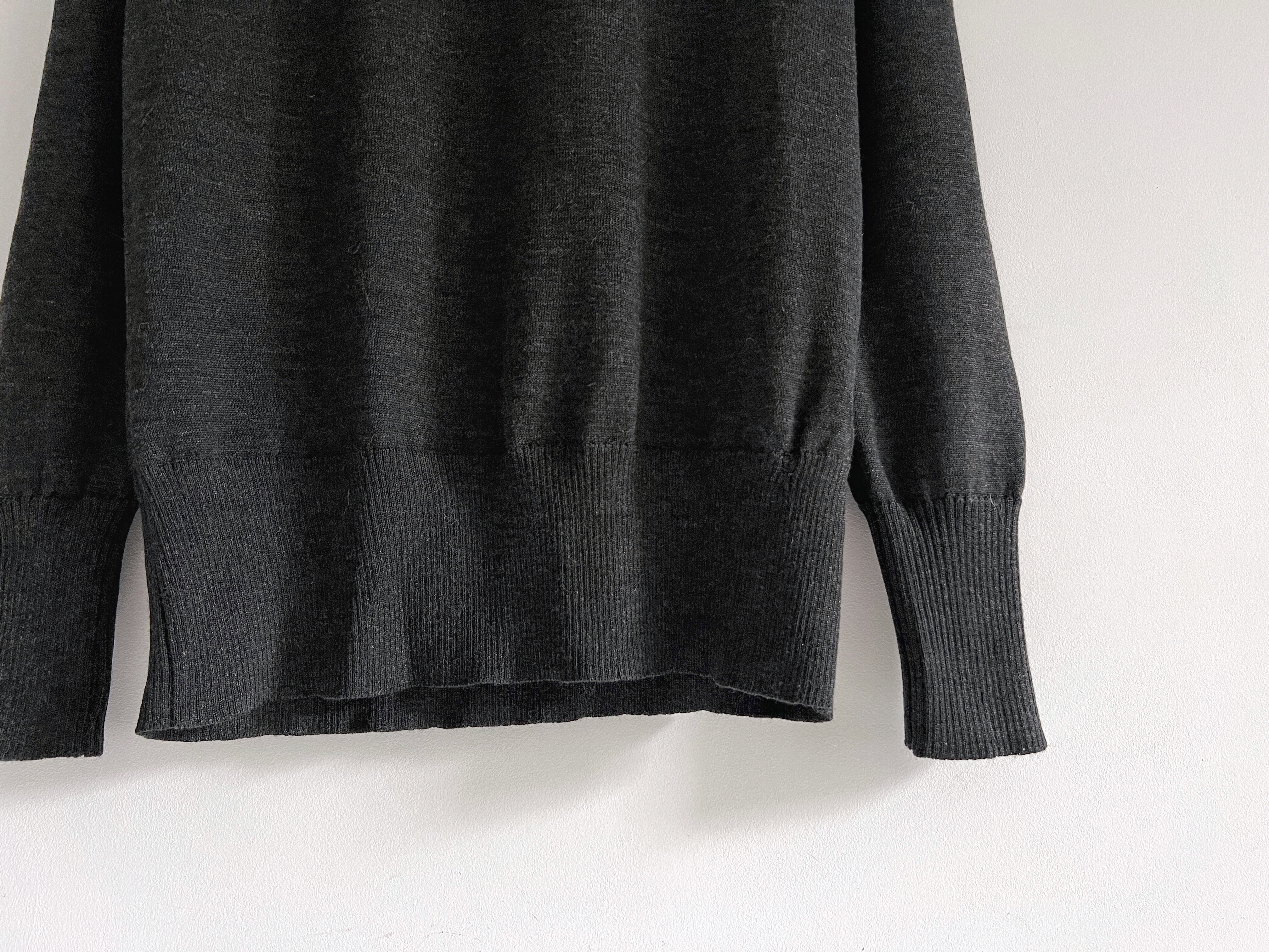 Sweter jest wykonany w 100% z wysokogatunkowej miękkiej wełny dziewiczej, made in UK. Brak etykiety z rozmiarem, ma nieco obniżone ramiona, będzie dobry na m/l, lub jako overize. Modelka ma 175 cm wzrostu. Idealny stan.