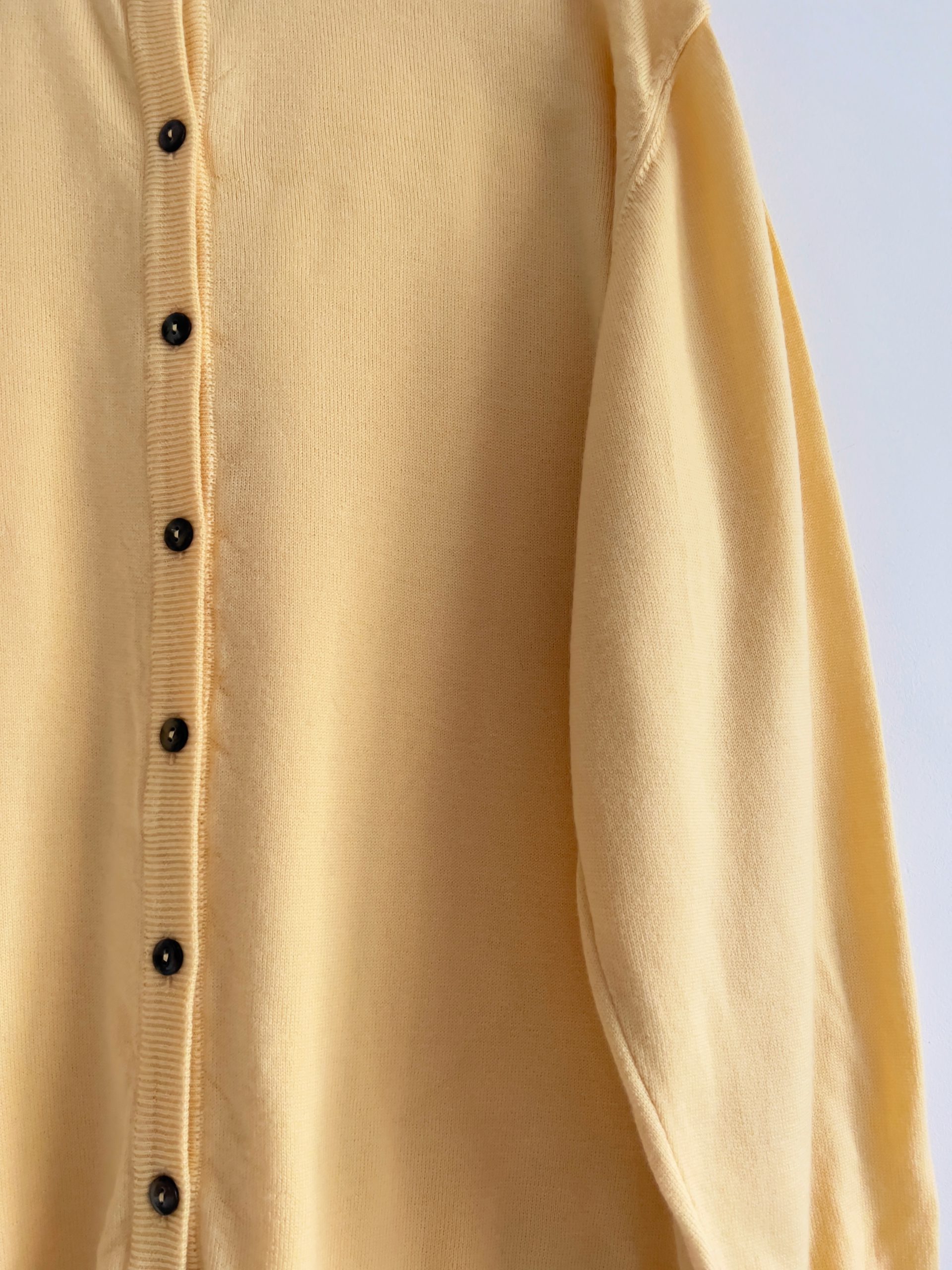 Kardigan o krótszym kroju, idealny do wysokich spodni. Rozmiar z metki M. Sweterek mimo zawartości moheru w składzie nie gryzie, jest mięciutki i miły w dotyku.
