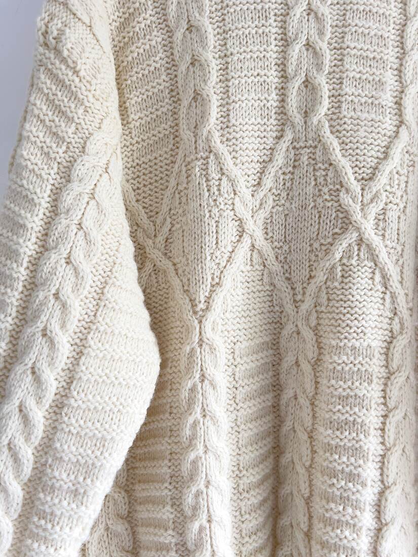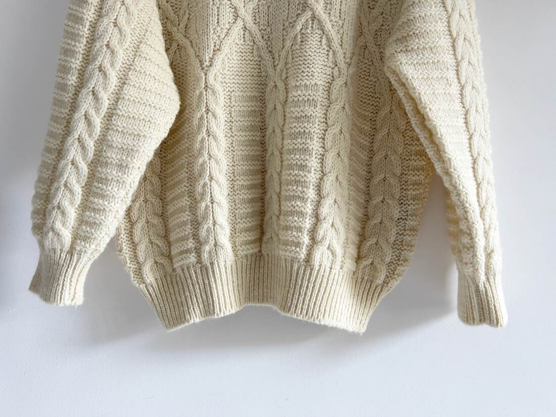 Minimalistyczny kremowy golf wykonany w 100% z wełny merynosa. Materiał przyjemny w dotyku, nie gryzie, sweter bez wad. Rozmiar z metki S, wymiary poniżej.