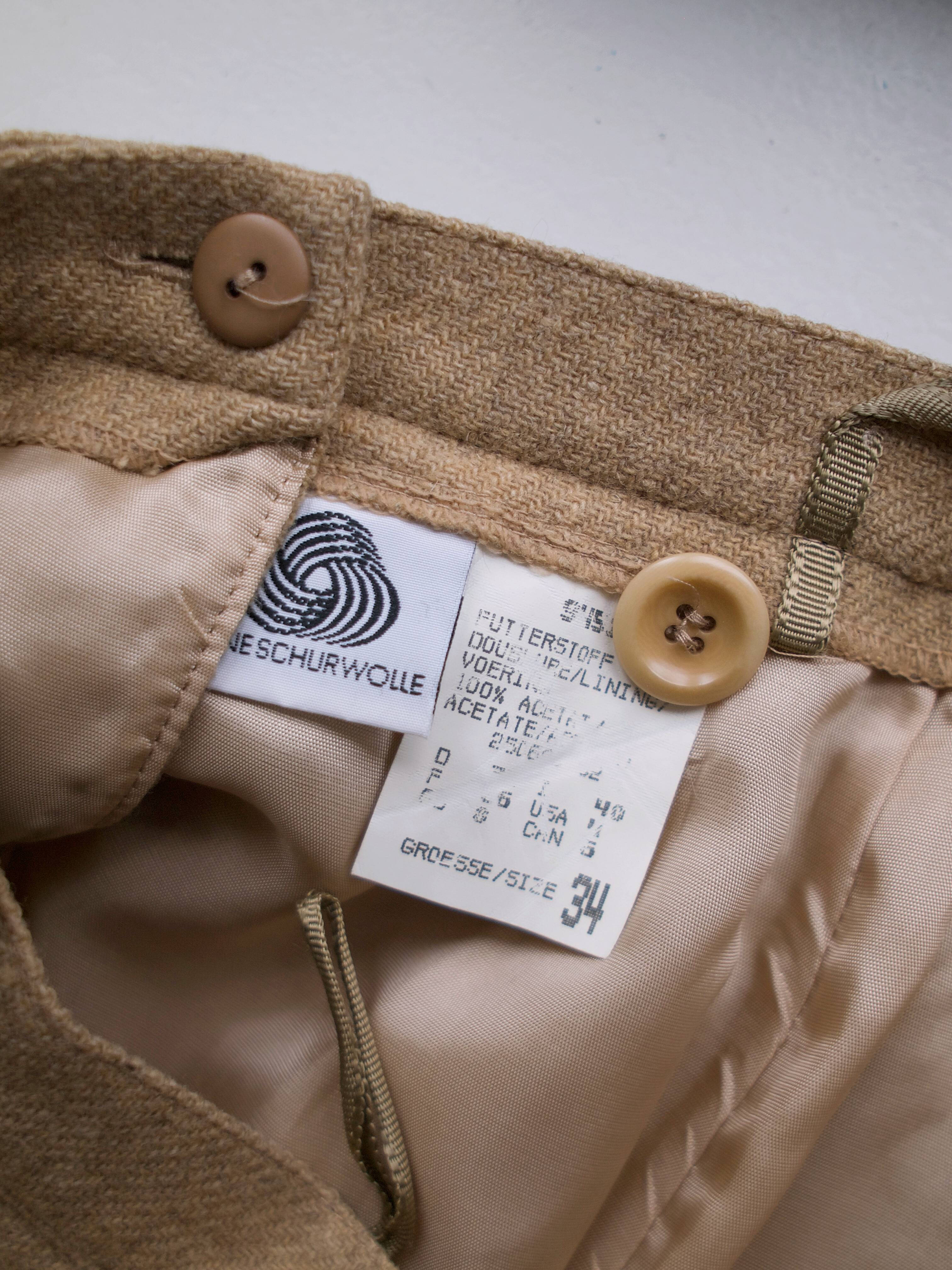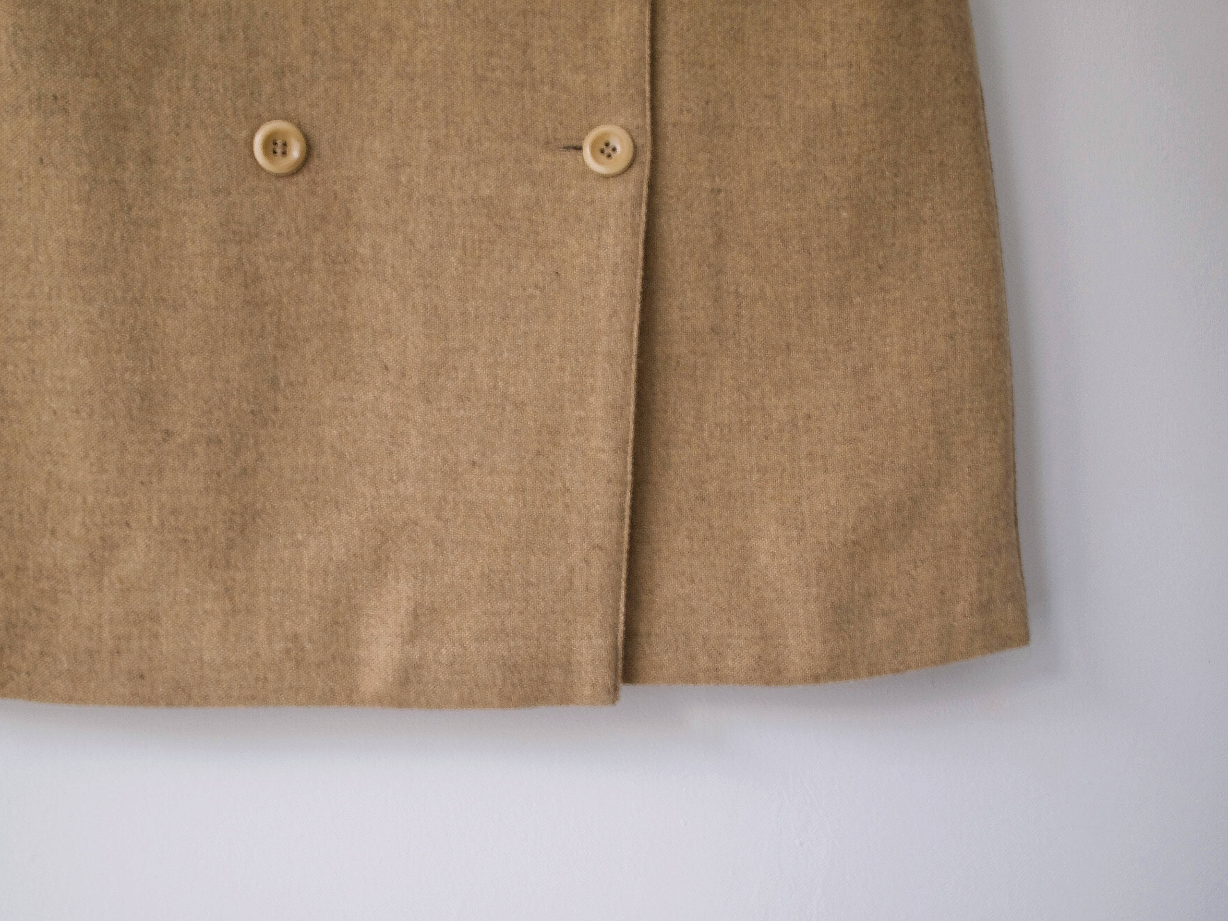 Rozmiar z metki: 34 Skład: 100% wełna, podszewka 100% acetat Stan: idealny Szerokość w pasie 33 cm Szerokość w biodrach 45 cm Długość całkowita 45 cm