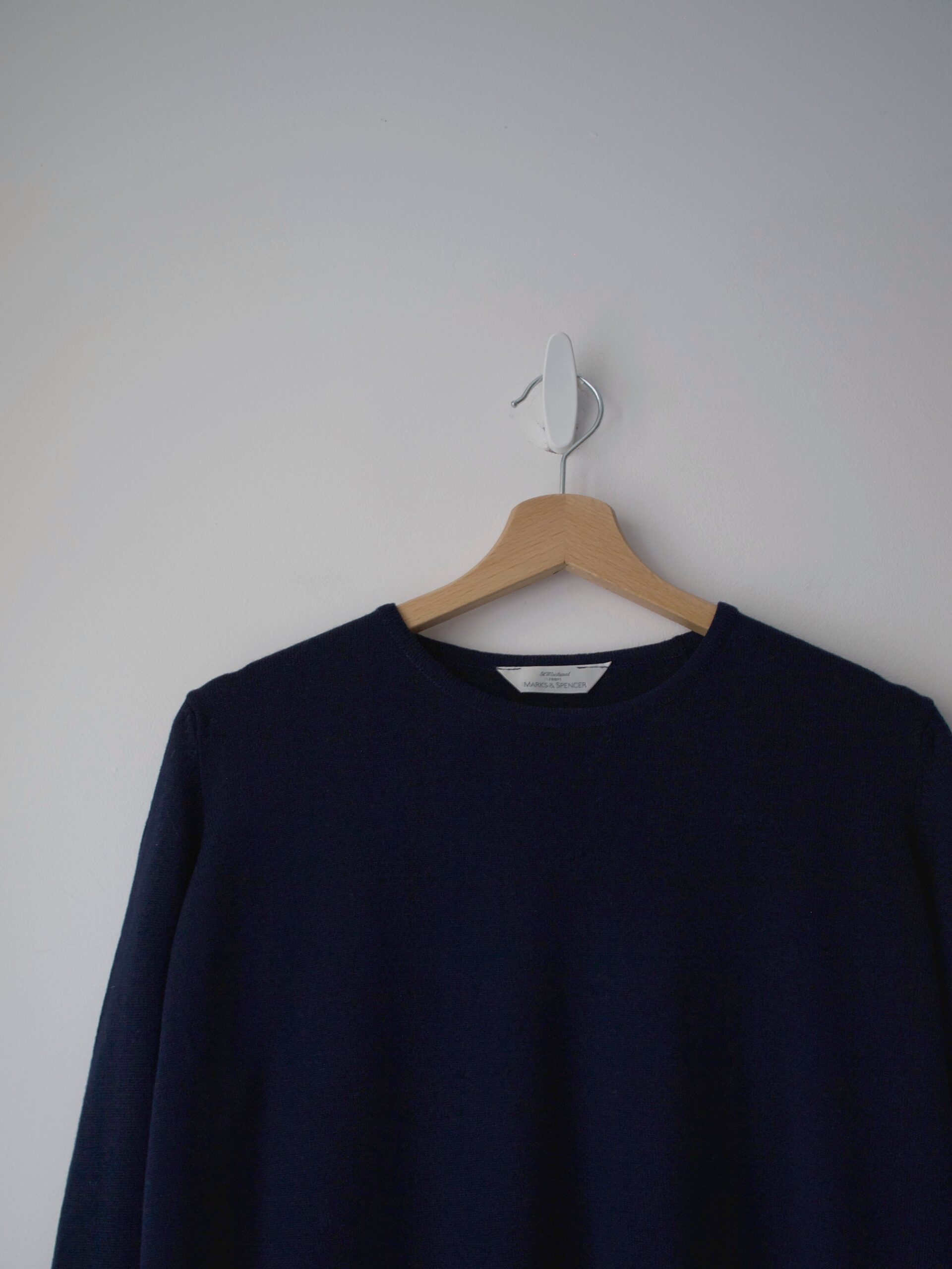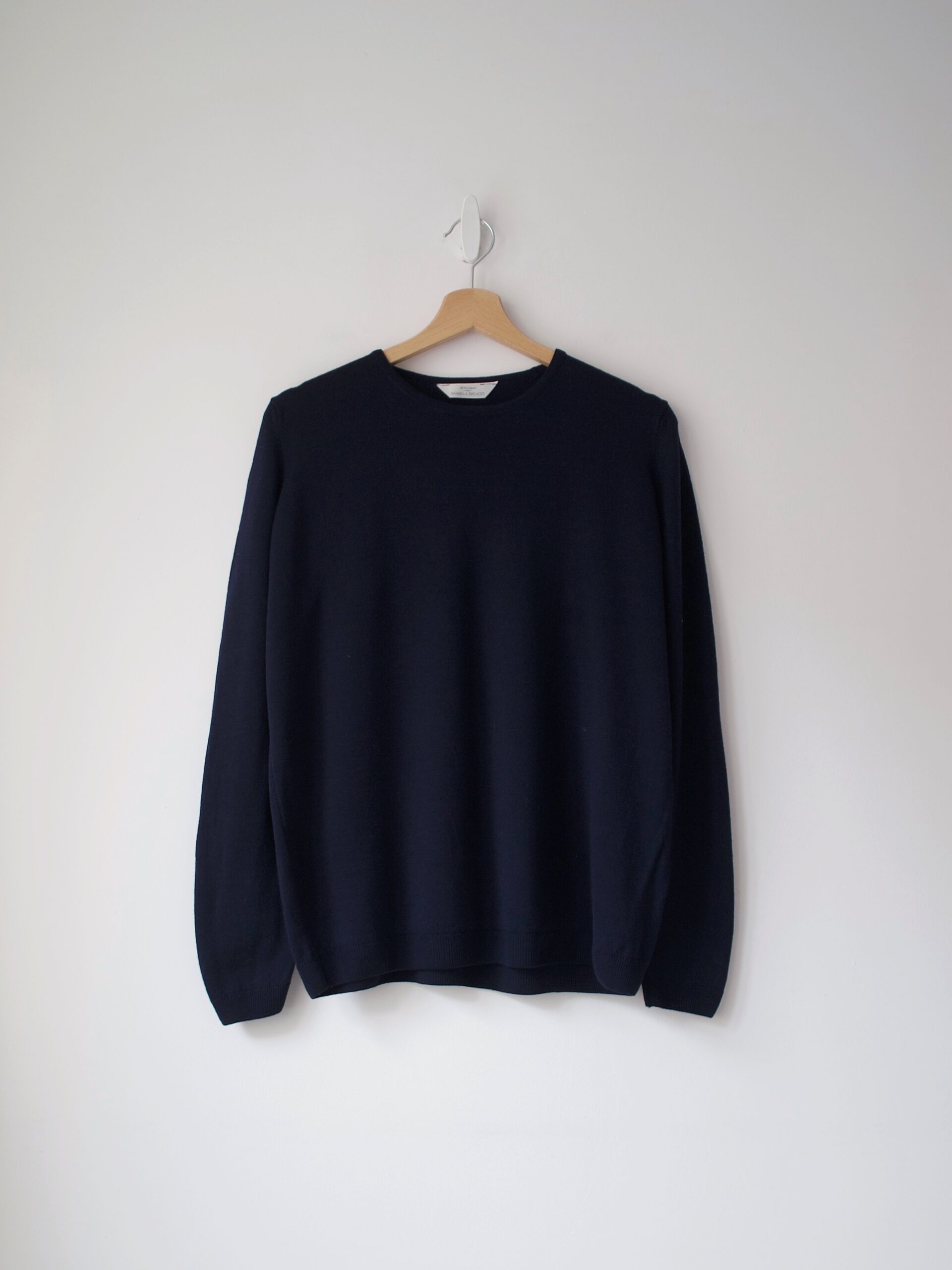 Sweter marki Marks&Spencer, w 100% wykonany z gładkiej niegryzącej wełny. Kolor granatowy