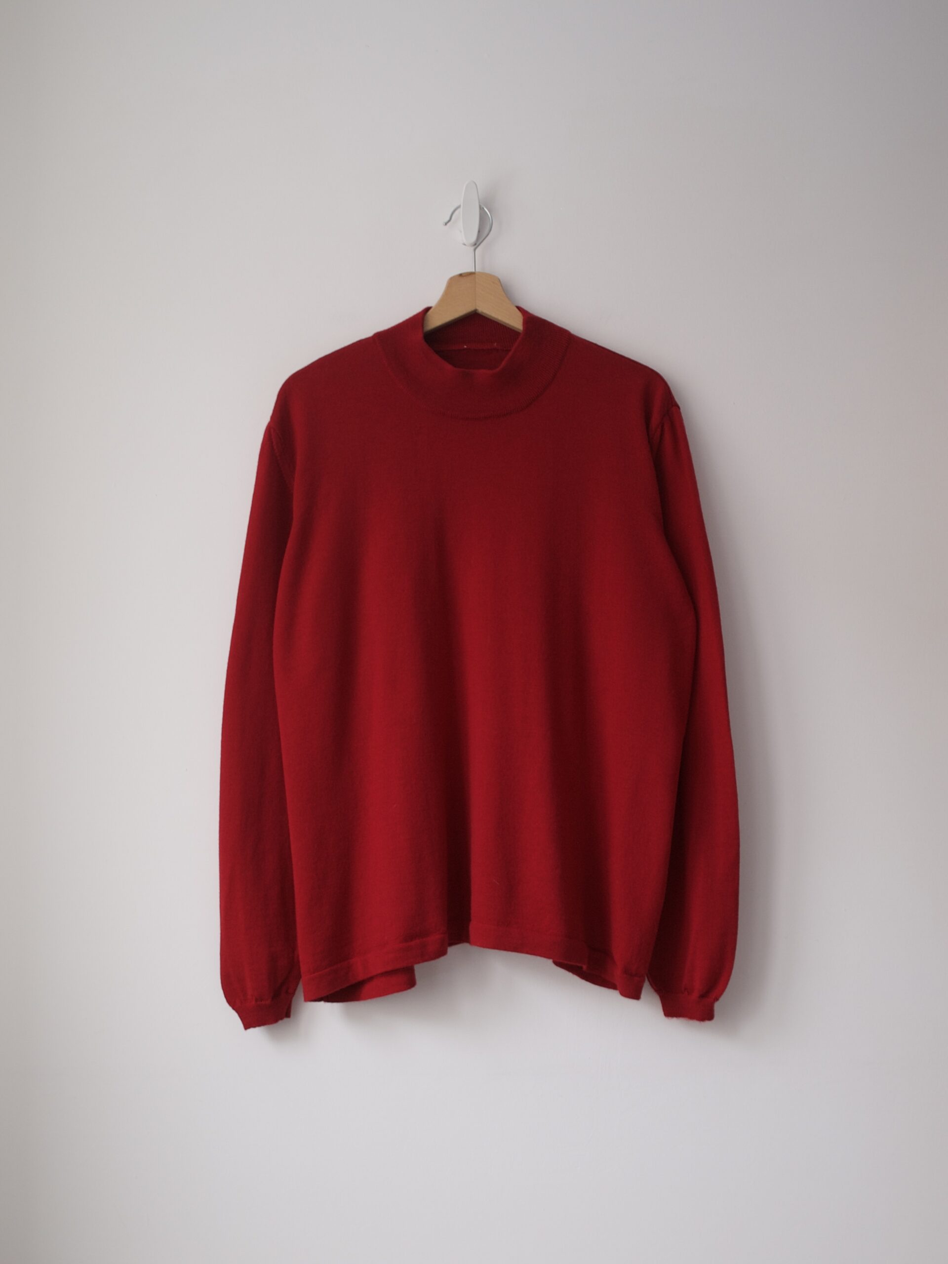Minimalistyczny wełniany sweter z golfem. Idealny stan, materiał nie gryzie. Brak metki z rozmiarem, na oko jest to L, na mniejsze rozmiary idealny jako oversize (proszę sprawdzać wymiary).