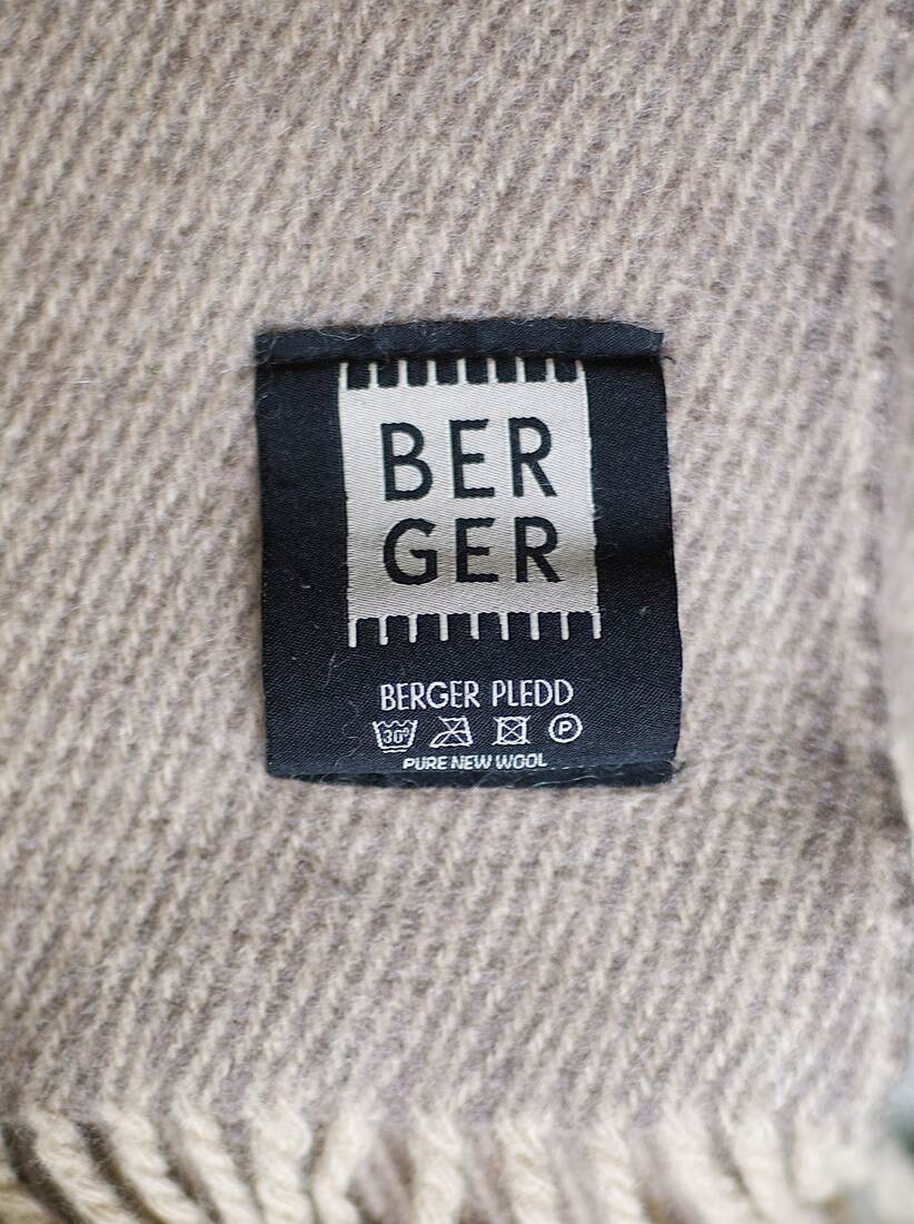 Koc norweskiej marki Berger, w 100% wykonany z żywej wełny. Idealny stan, po czyszczeniu. Wymiary bez frędzli 160*135 cm.