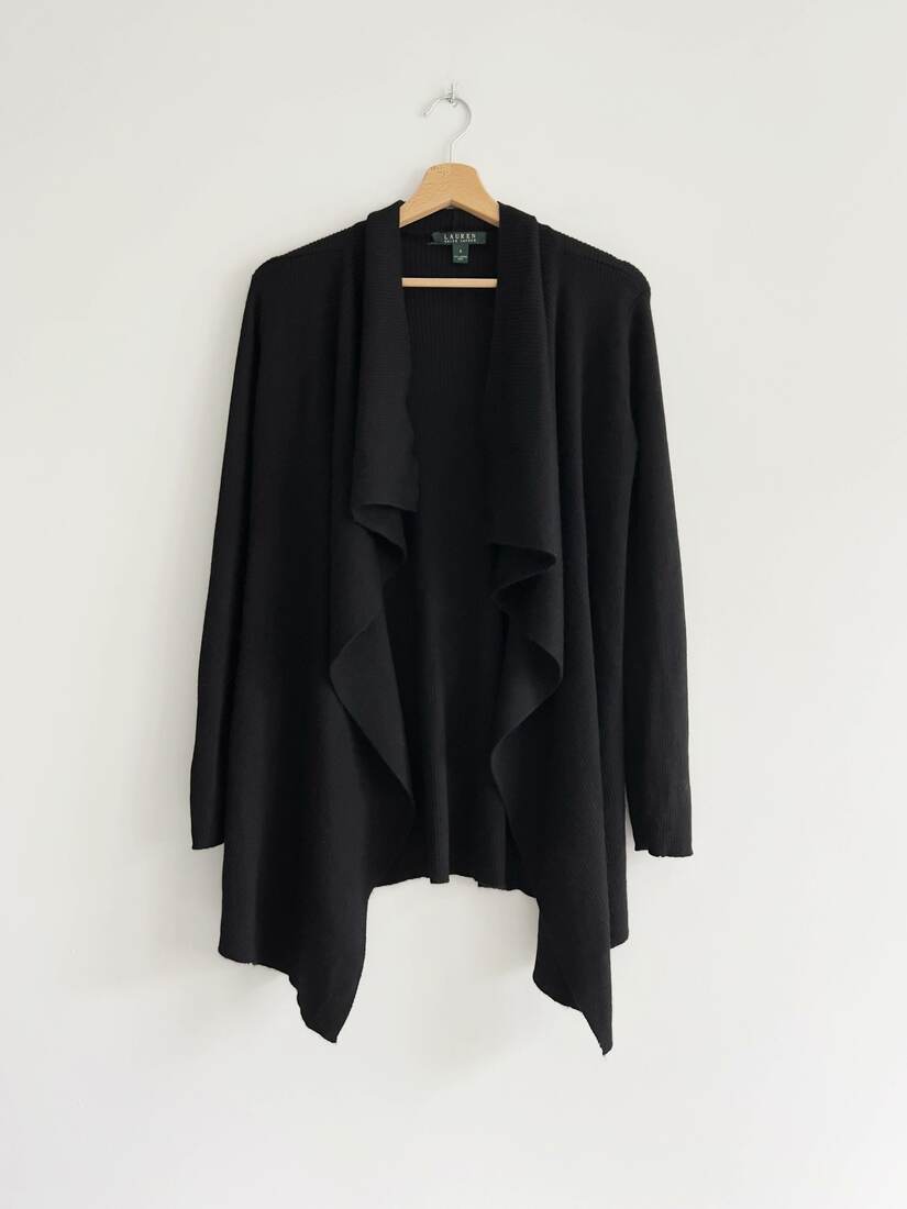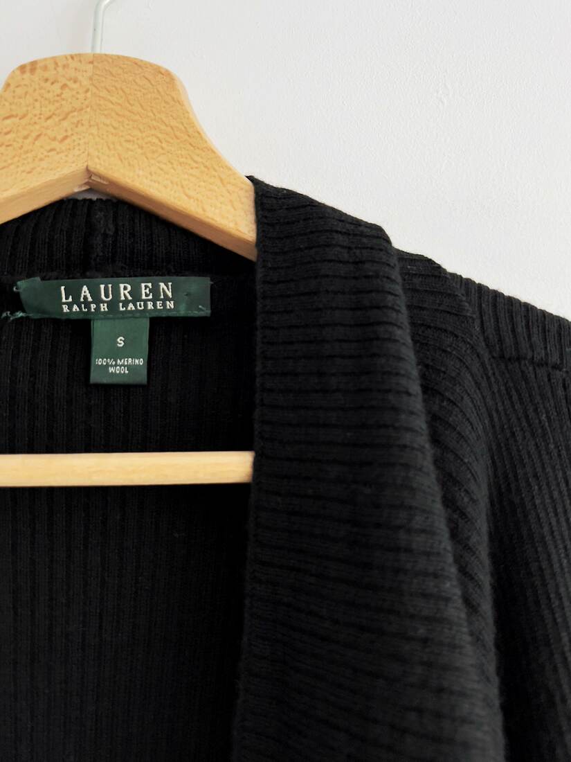 Wełniany sweter marki Ralph Lauren. Asymetryczny dół, bez zapięcia. Rozmiar z metki S. Bardzo dobry stan.
