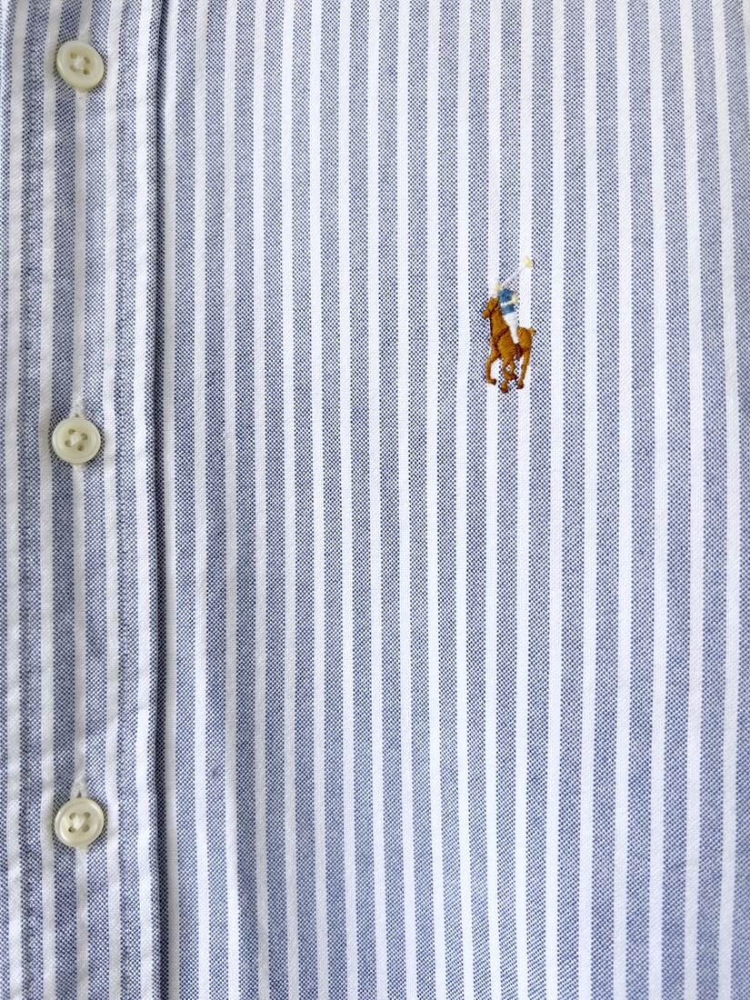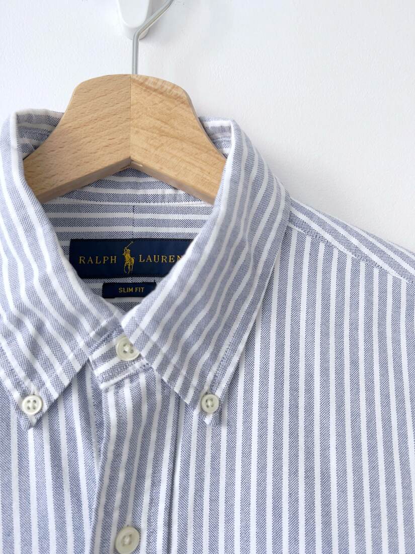 Koszula renomowanej marki Ralph Lauren, model Slim Fit Striped Oxford Shirt. W 100% wykonana z bawełny. Rozmiar z metki S (męskie), idealny stan.