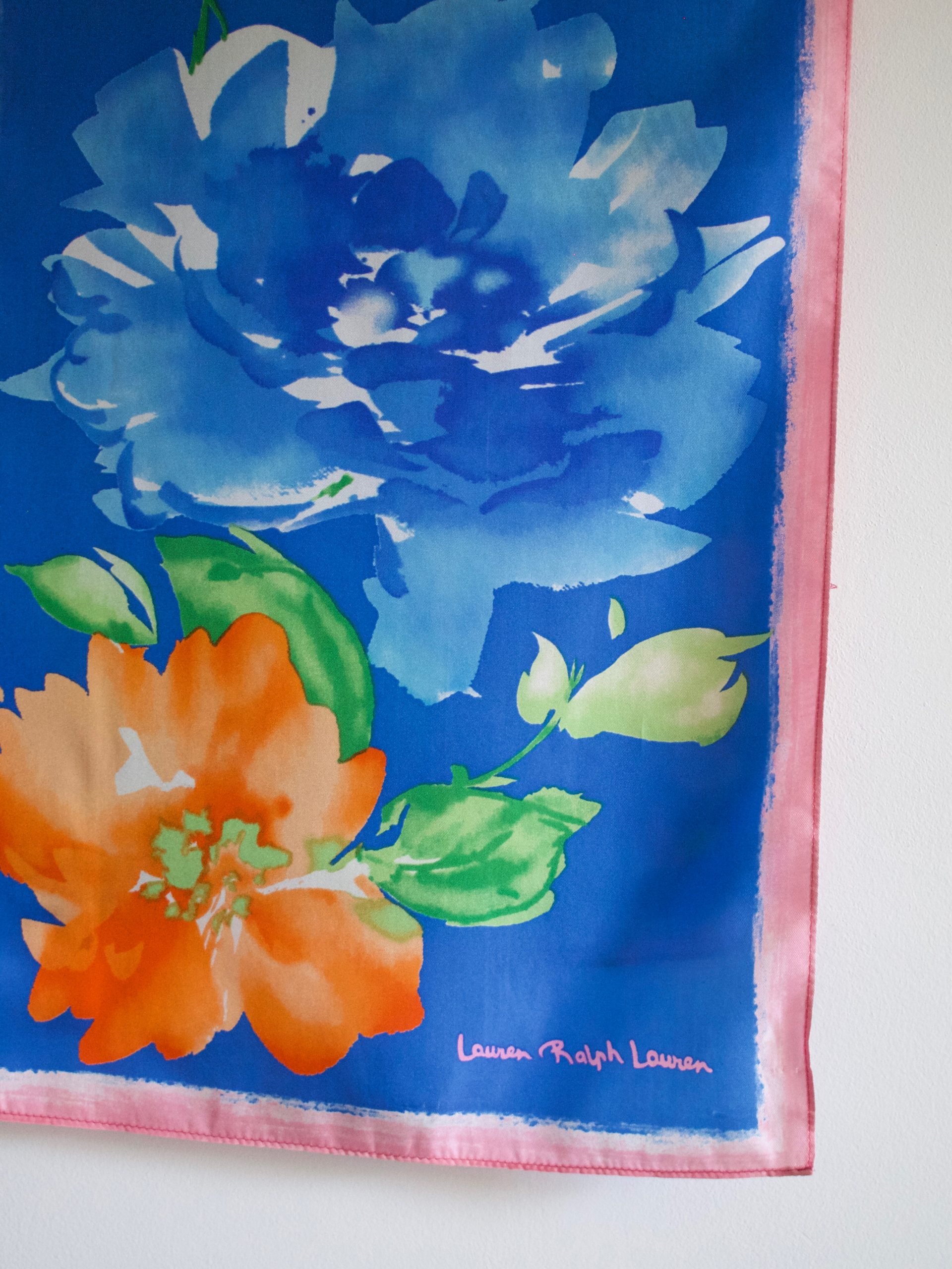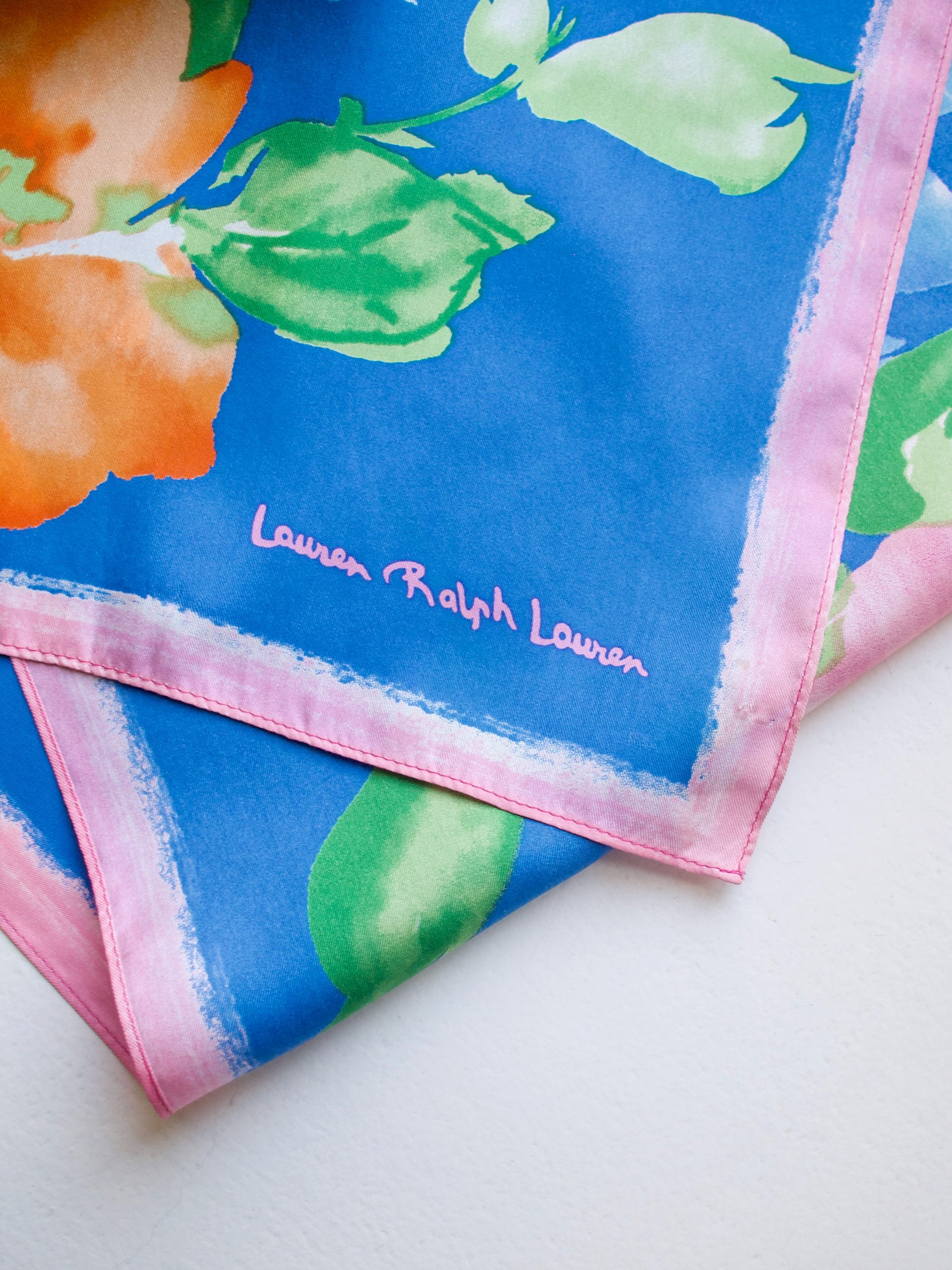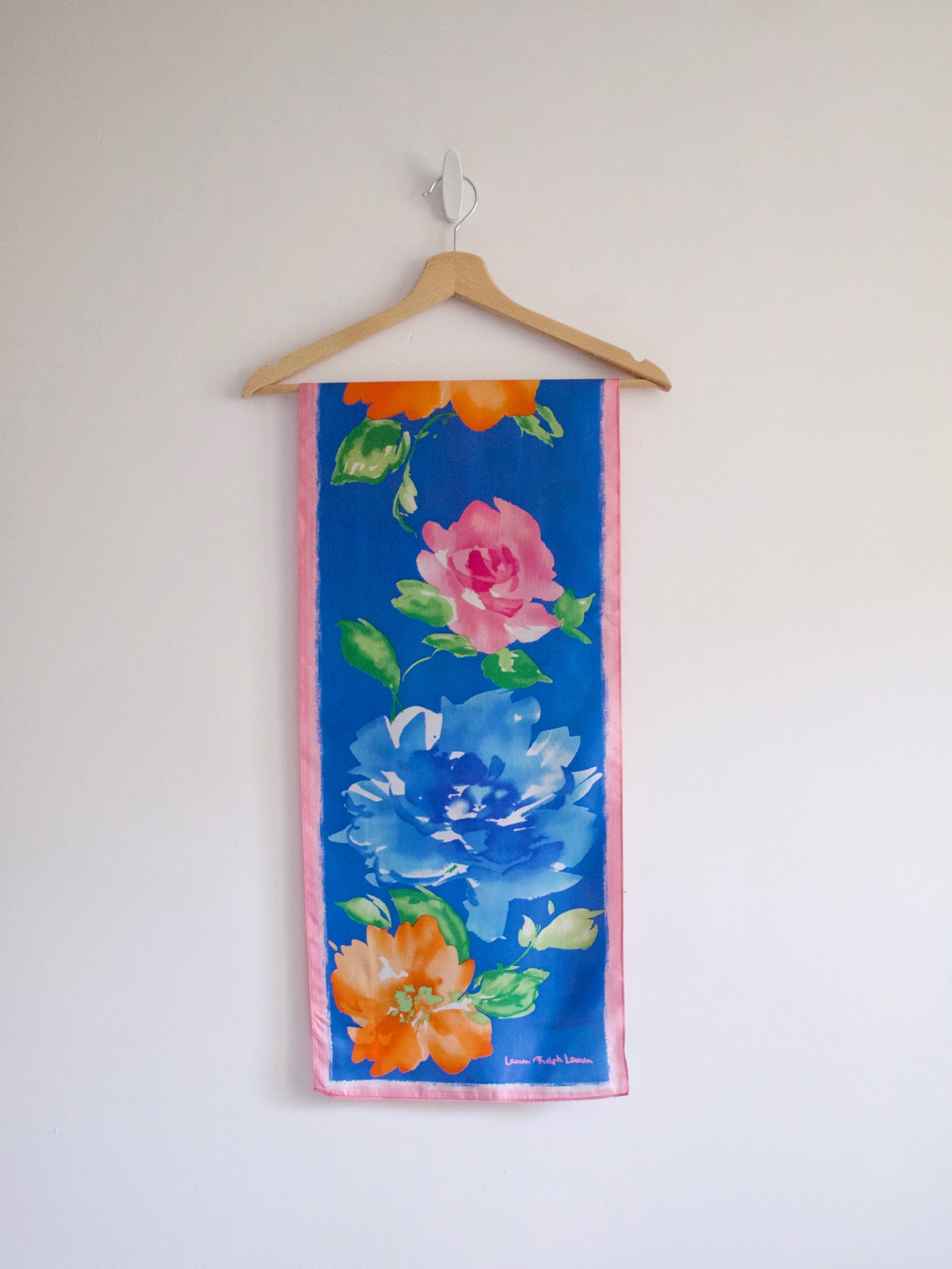 Szalik ekskluzywnej marki Ralph Lauren w piękny akwarelowy wzór. W 100% wykonany z jedwabiu. Idealny stan Wymiary: 136*31 cm