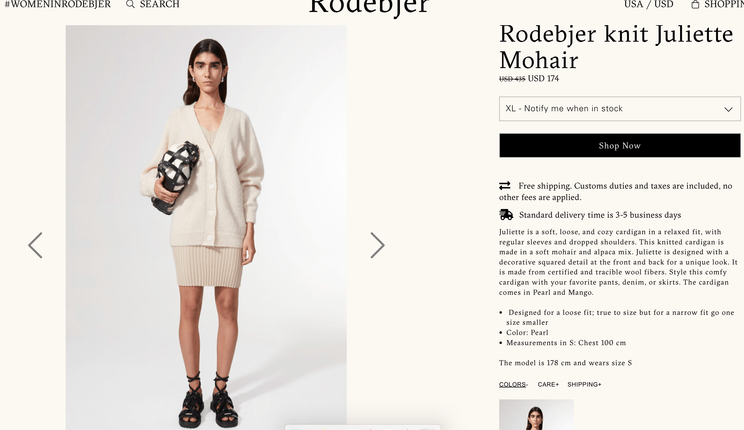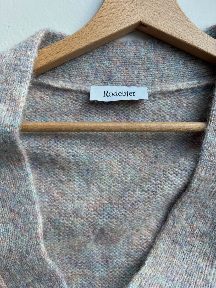 Kardigan luksusowej marki Rodebjer, model Juliette, cena na stronie ponad 800 zł. Wyprodukowany we Włoszech.