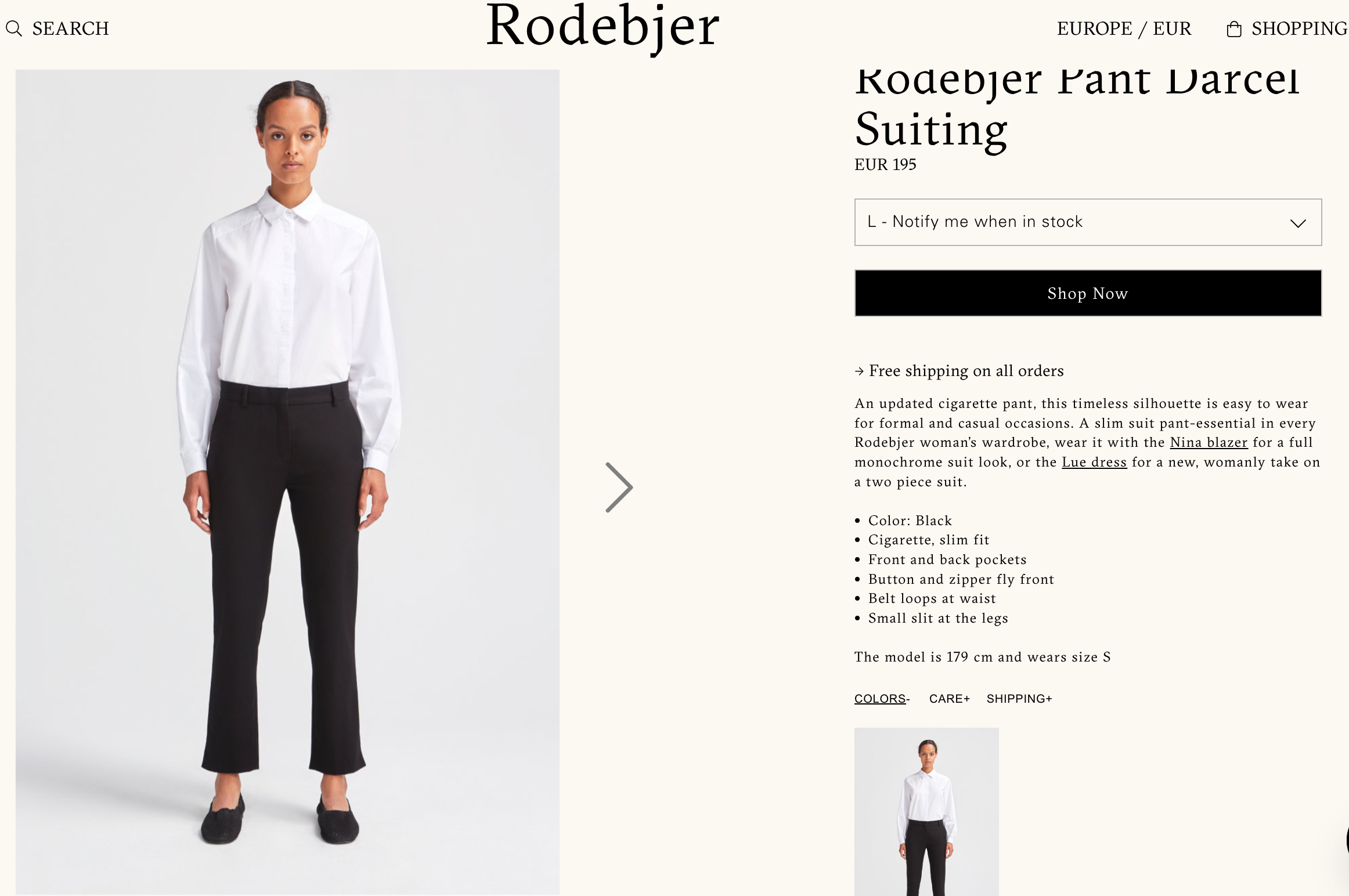 Spodnie cygaretki luksusowej marki Rodebjer, model Darcel Suiting, cena katalogowa 195 eur, czyli ponad 800 zł. Z kieszeniami, nogawki wykończone małymi rozporkami.