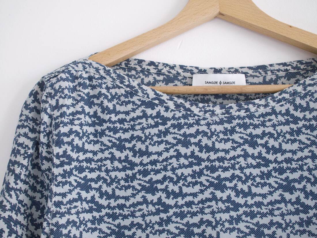 Jedwabna bluzka we wzory skandynawskiej marki Samsoe Samsoe. Rozmiar z metki M, będzie pasować również na XS-S. Bardzo dobry stan.