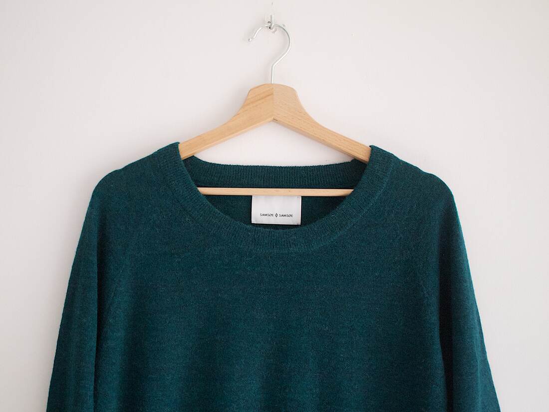 Sweter o pudełkowym kroju skandynawskiej marki Samsoe Samsoe. Wykonany z materiału z dużym udziałem wełny: 23% wełna, 13% alpaka. Bardzo dobry stan.