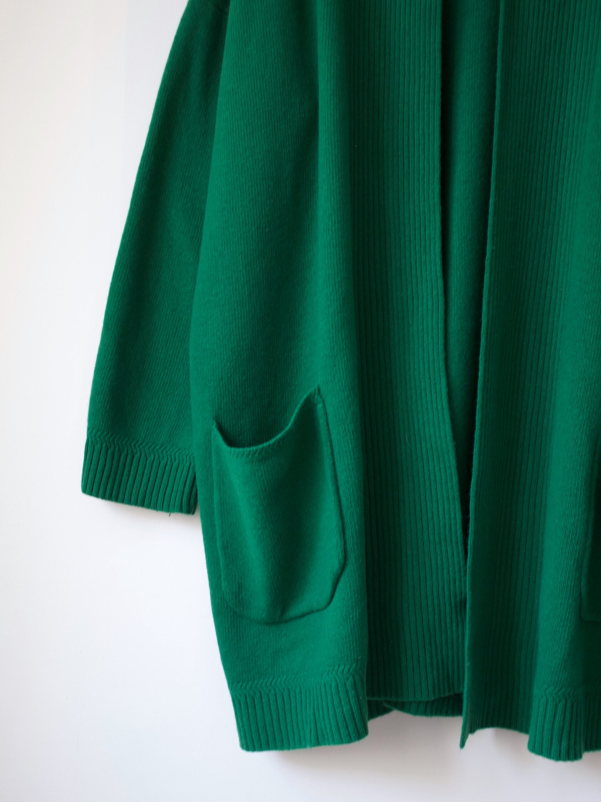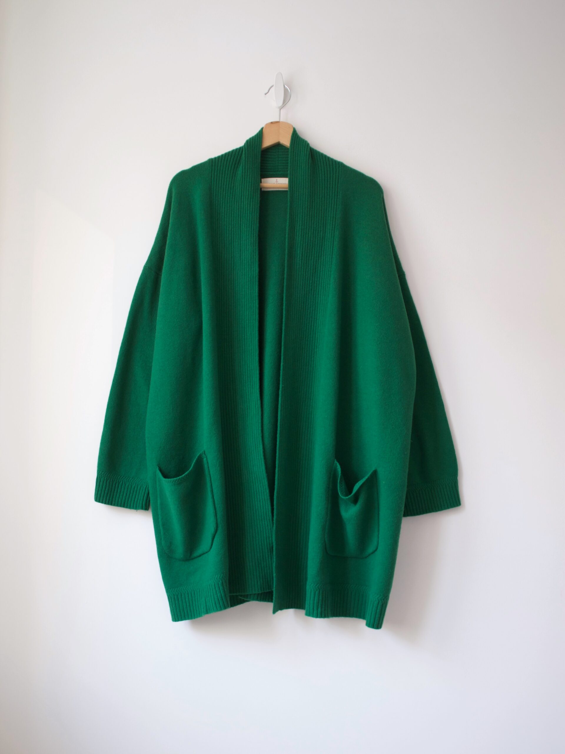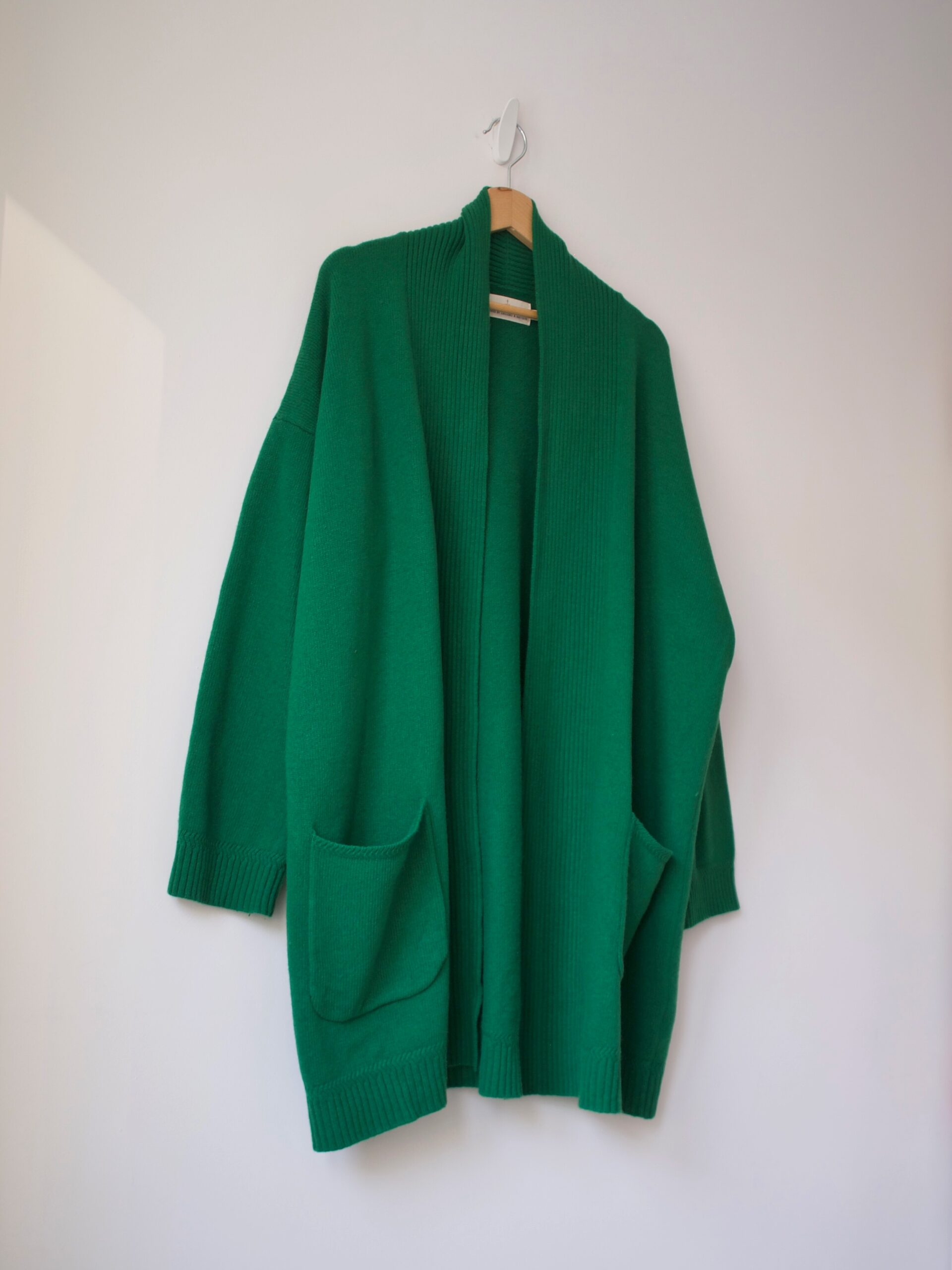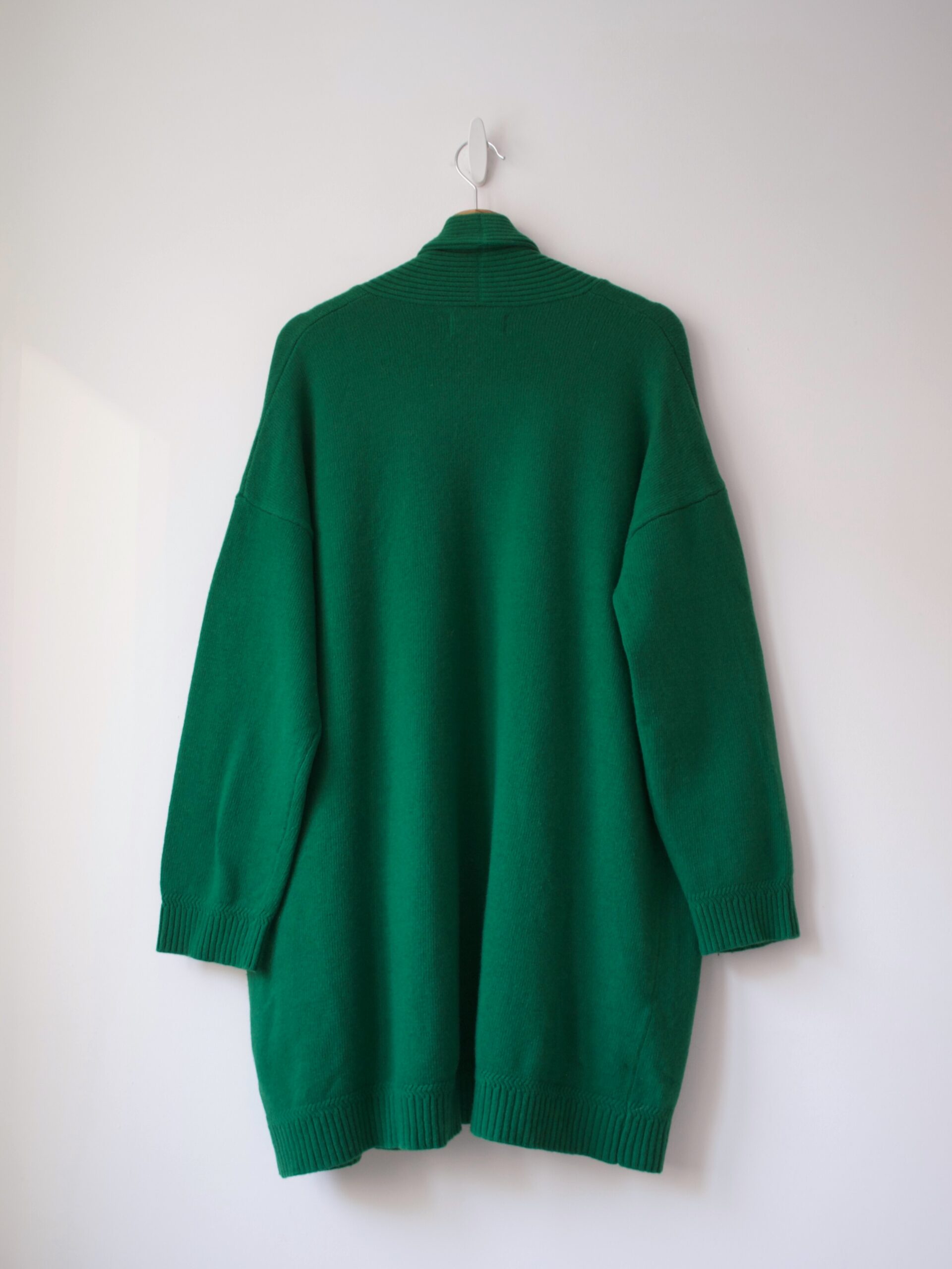 Gruby wełnainy kardigan w pięknym żywym kolorze. Może być noszony jako okrzycie wierzchnie.