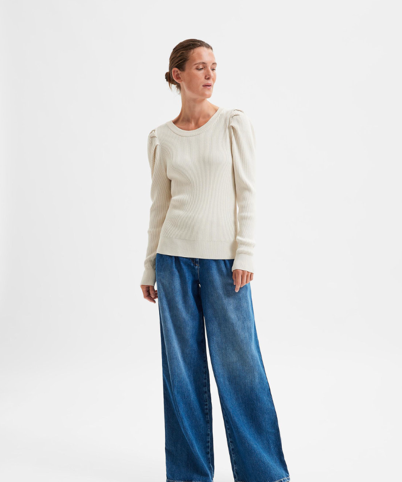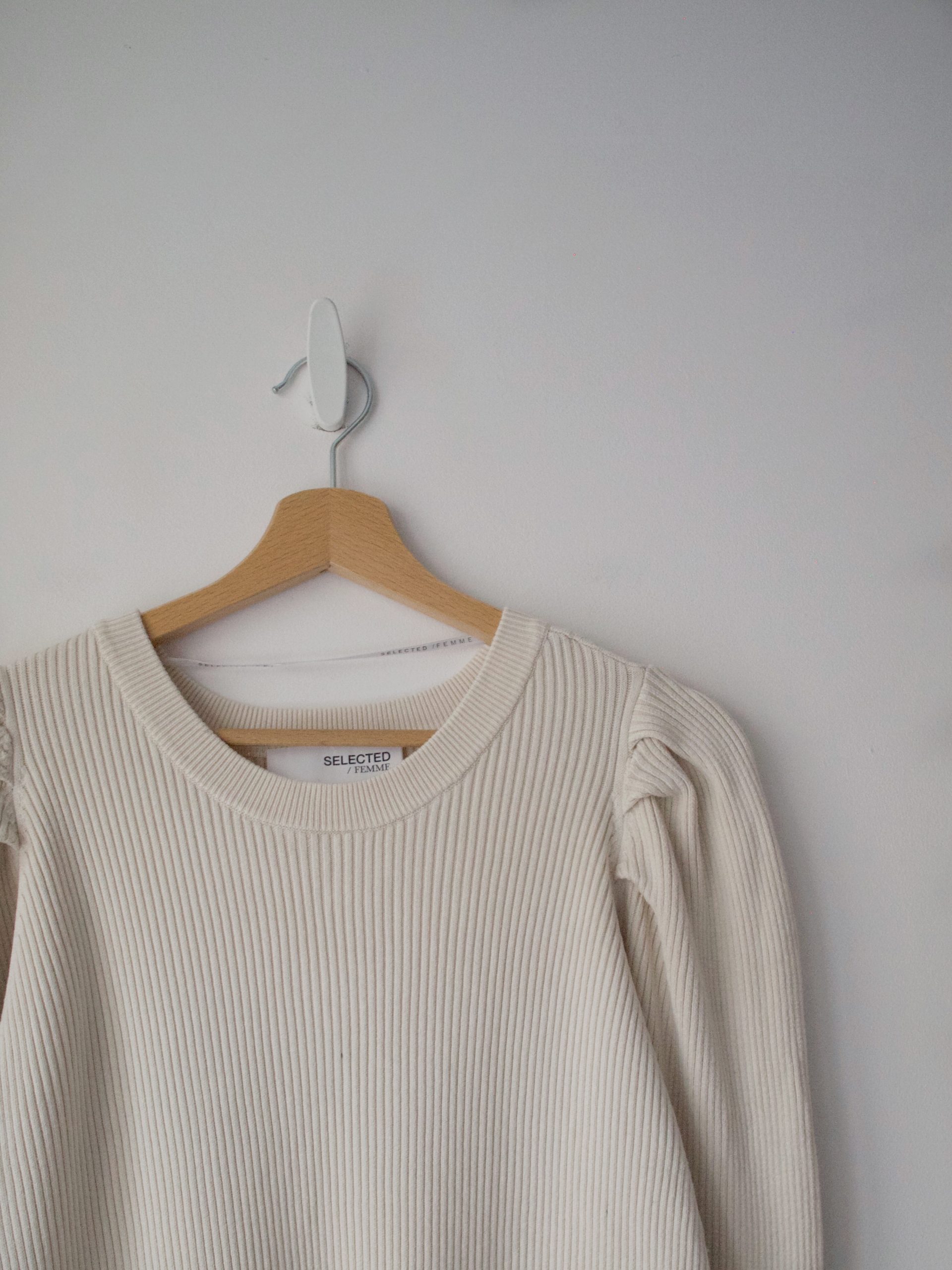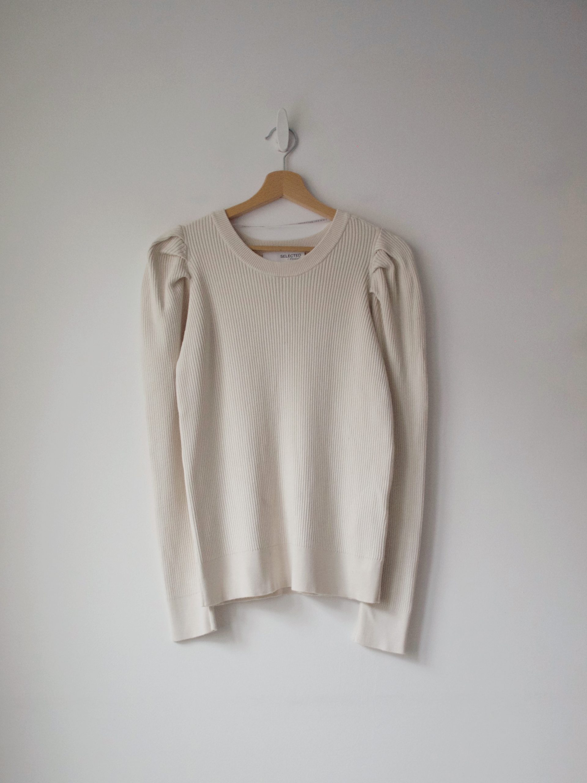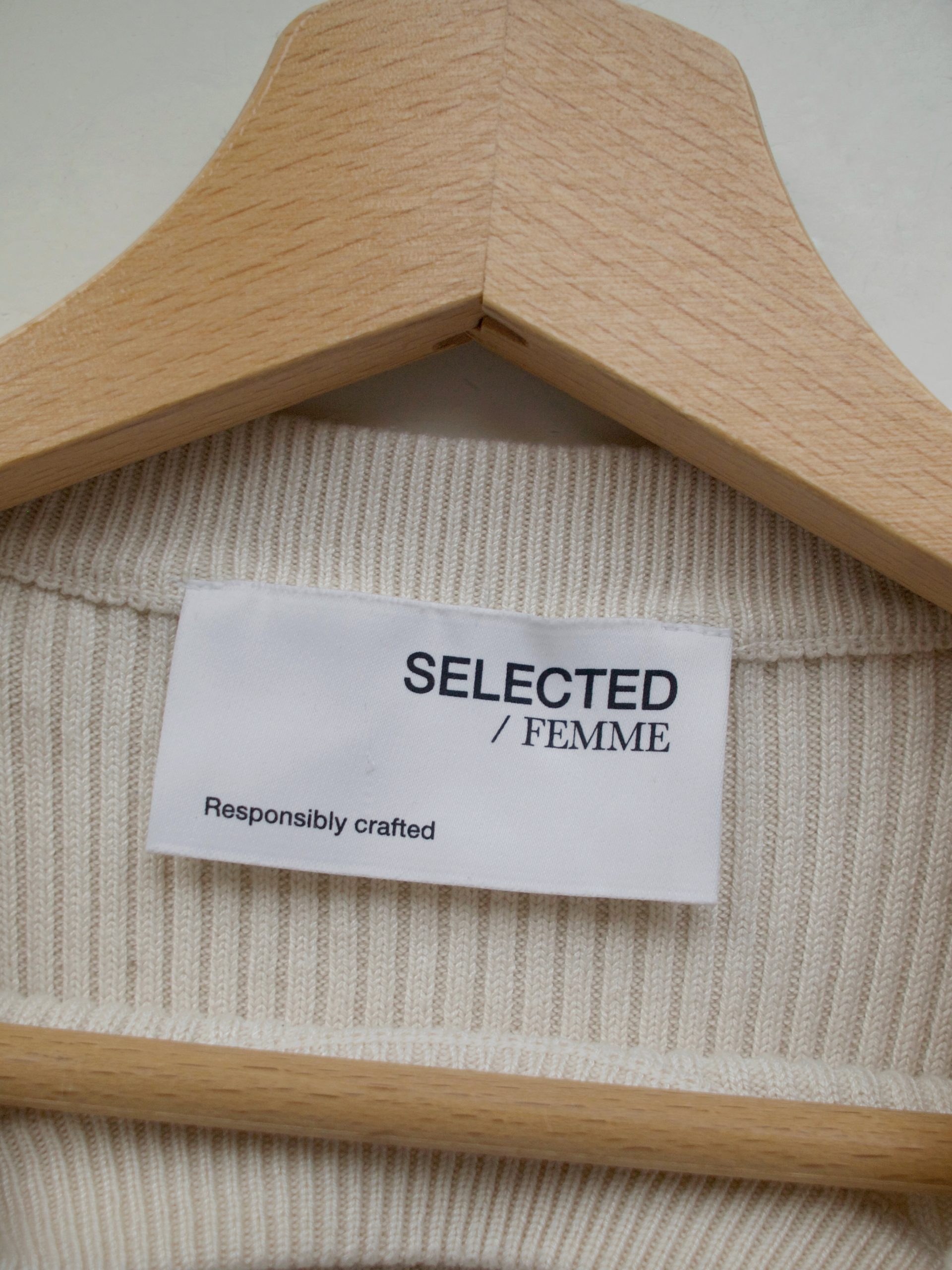 Sweter skandynawskiej marki Selected. Rozmiar z metki: brak, polecam na L Skład: 91% wiskoza Ecovero, 9% nylon Stan: bez wad Szerokość w klatce 43 cm Długośćcałkowita 60 cm