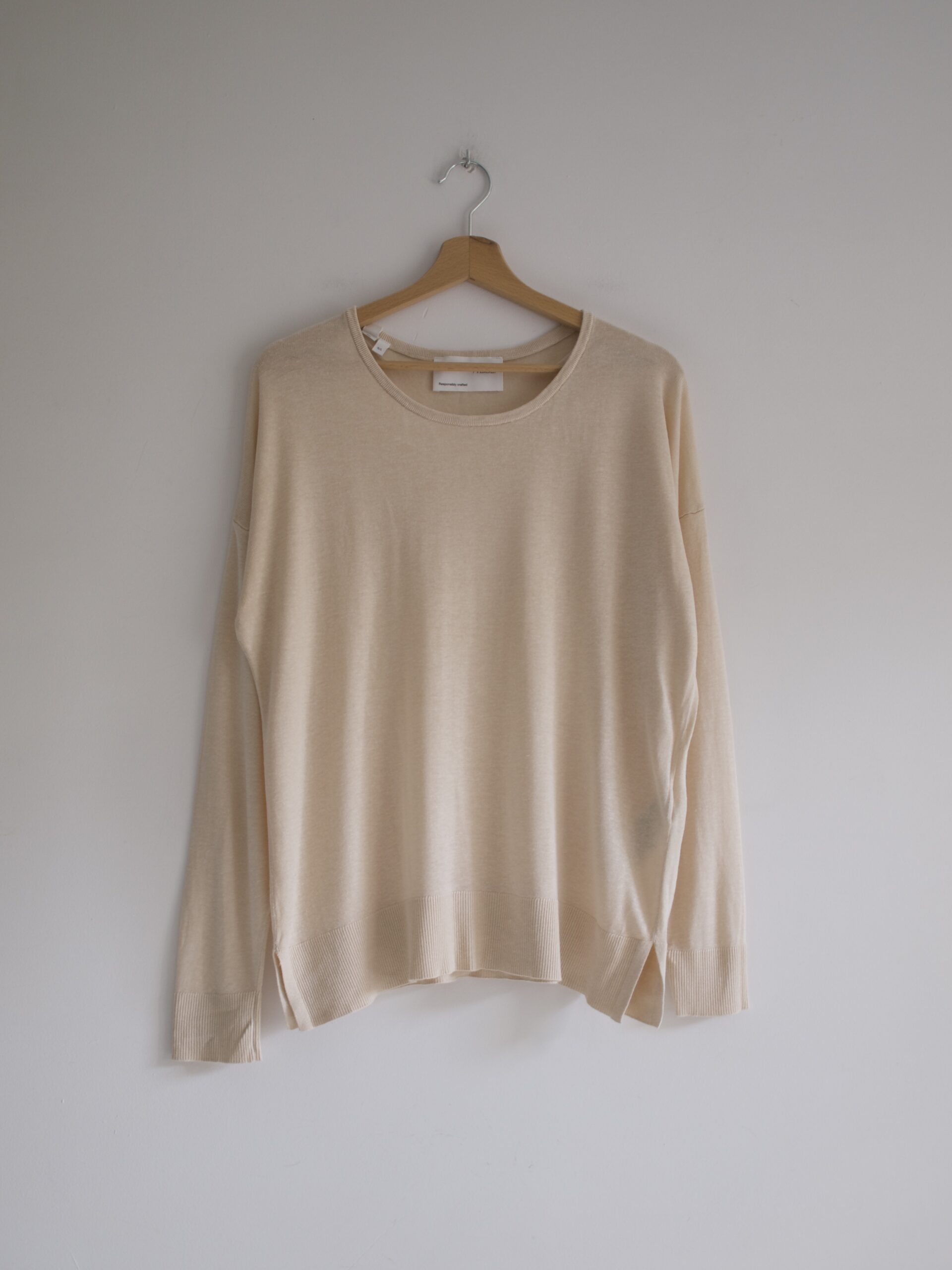 Minimalistyczny kardigan o luźnym kroju. Kardigan nie ma żadnych metek, przypuszczam, że był szyty ręcznie, lub na zamówienie. Materiał przyjemny w dotyku, nie gryzie. Wymiary poniżej.