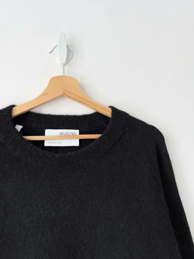 Sweter skandynawskiej marki Selected Femme. Brak metki ze składem, prawdopodobnie jest to wełna, moher oraz poliamid. Rozmiar z metki L/XL, na mniejsze idealna jako oversize. Bez wad.