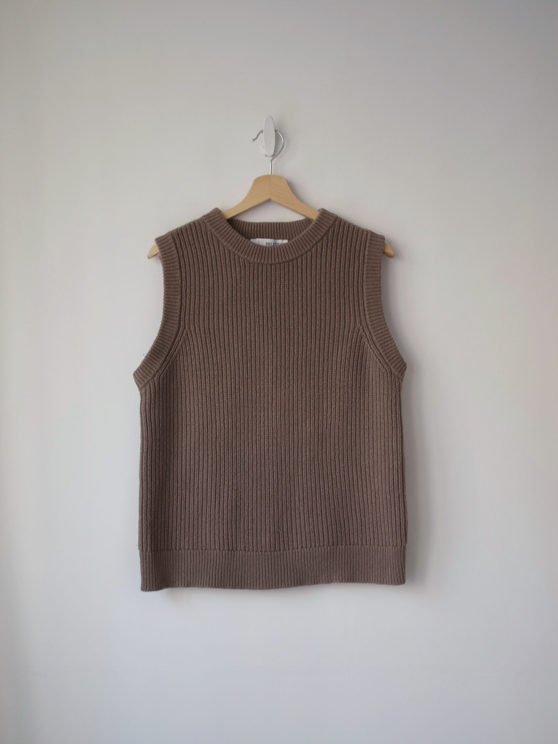 Kamizelka skandynawskiej marki Selected, wykonana z mieszanki wełny oraz bawełny. Kolor szaro-beżowy/taupe.