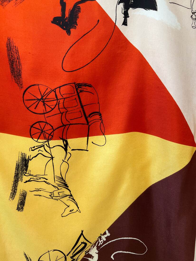 Duża jedwabna chusta we wzory. Bardzo dobry stan. Wymiary: 81*79