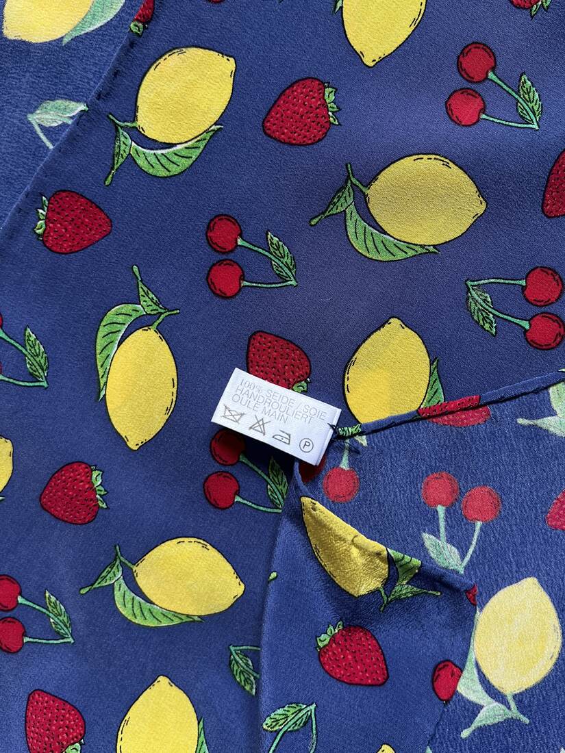 Jedwabna apaszka vintage we wzory. Szwajcarska marka Christian Fischbacher. Małe wady pokazane na zdjęciach.