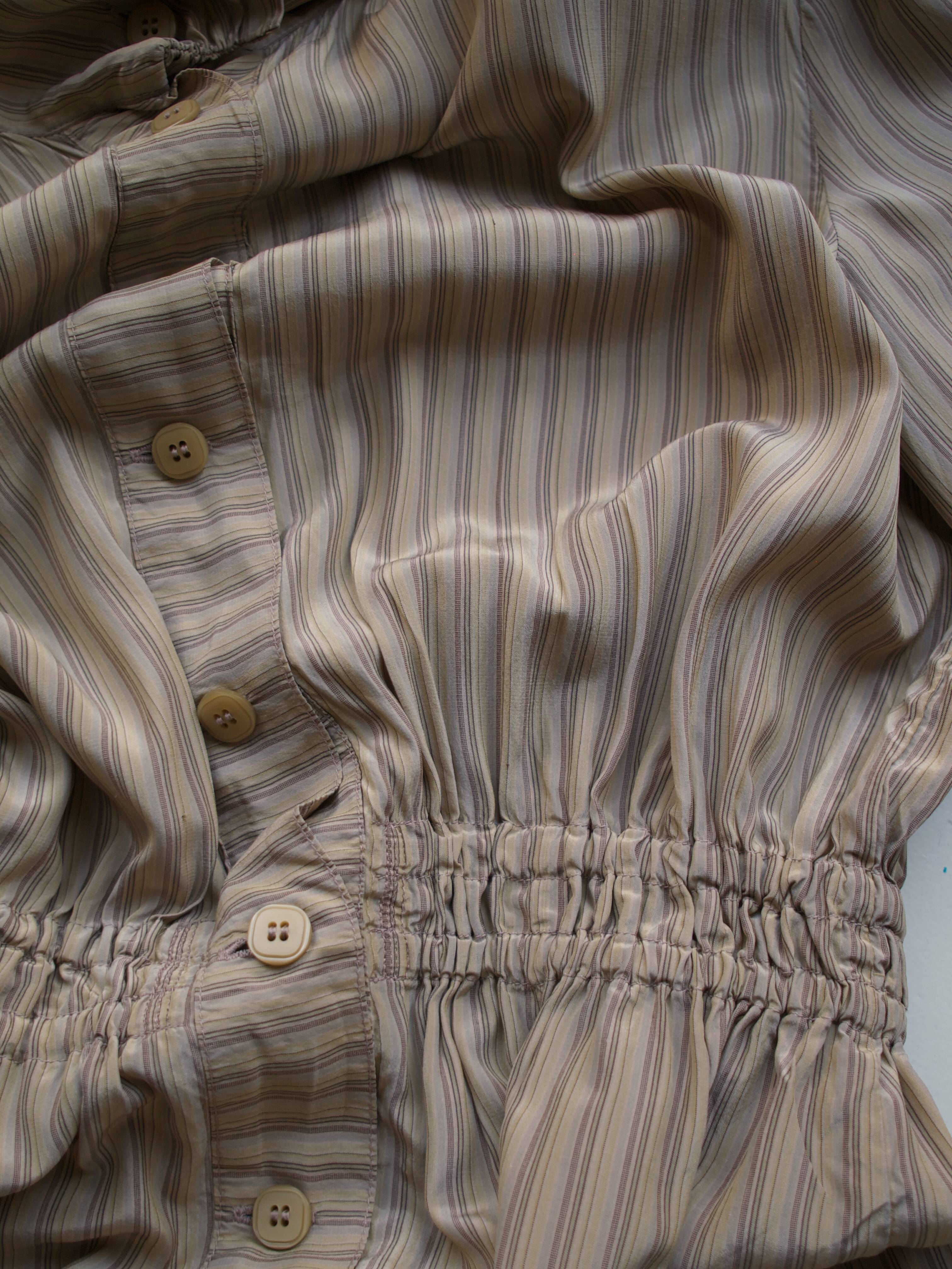 Unikatowa jedwabna bluzka, szyta według czyjegoś projektu.