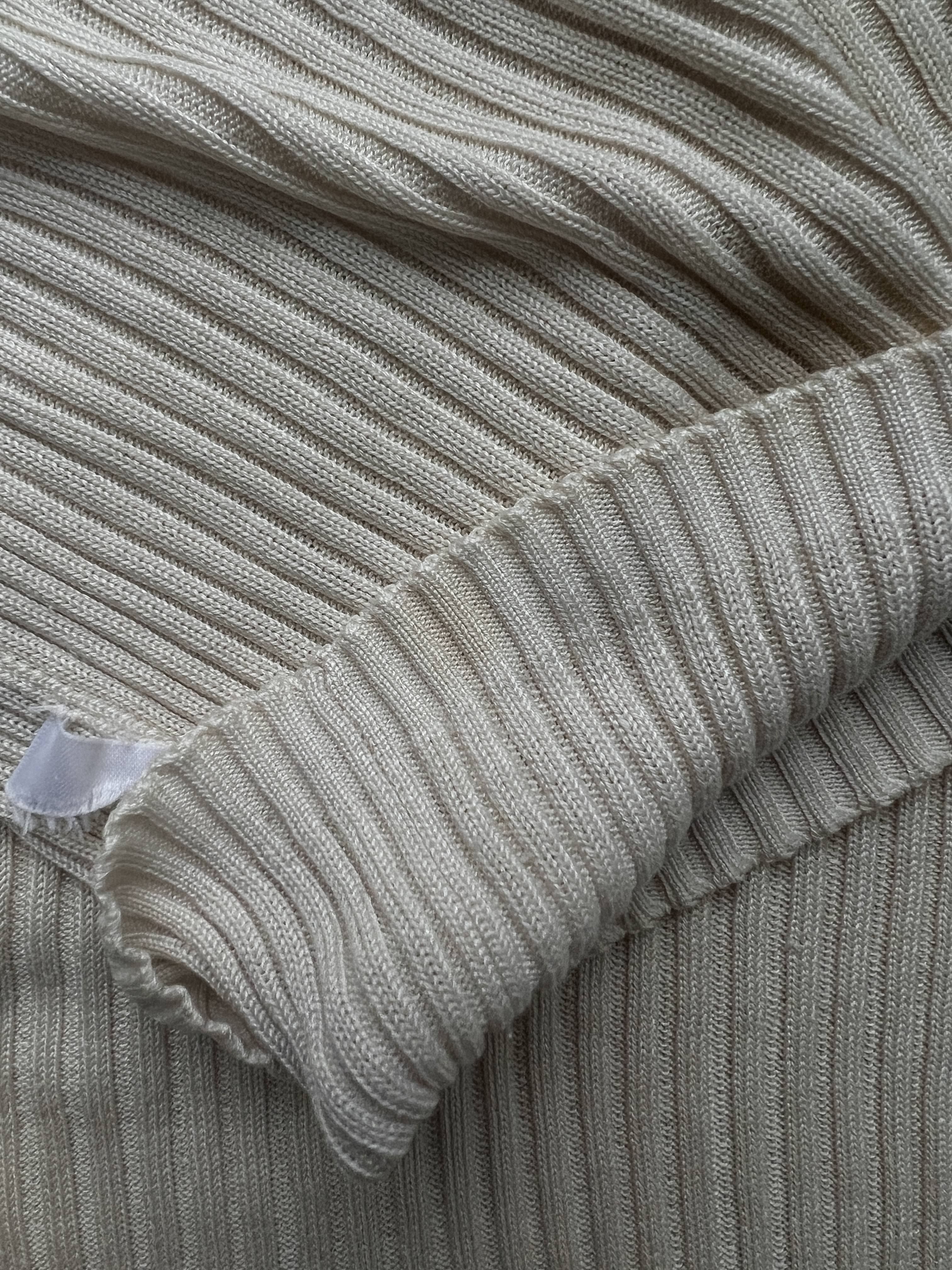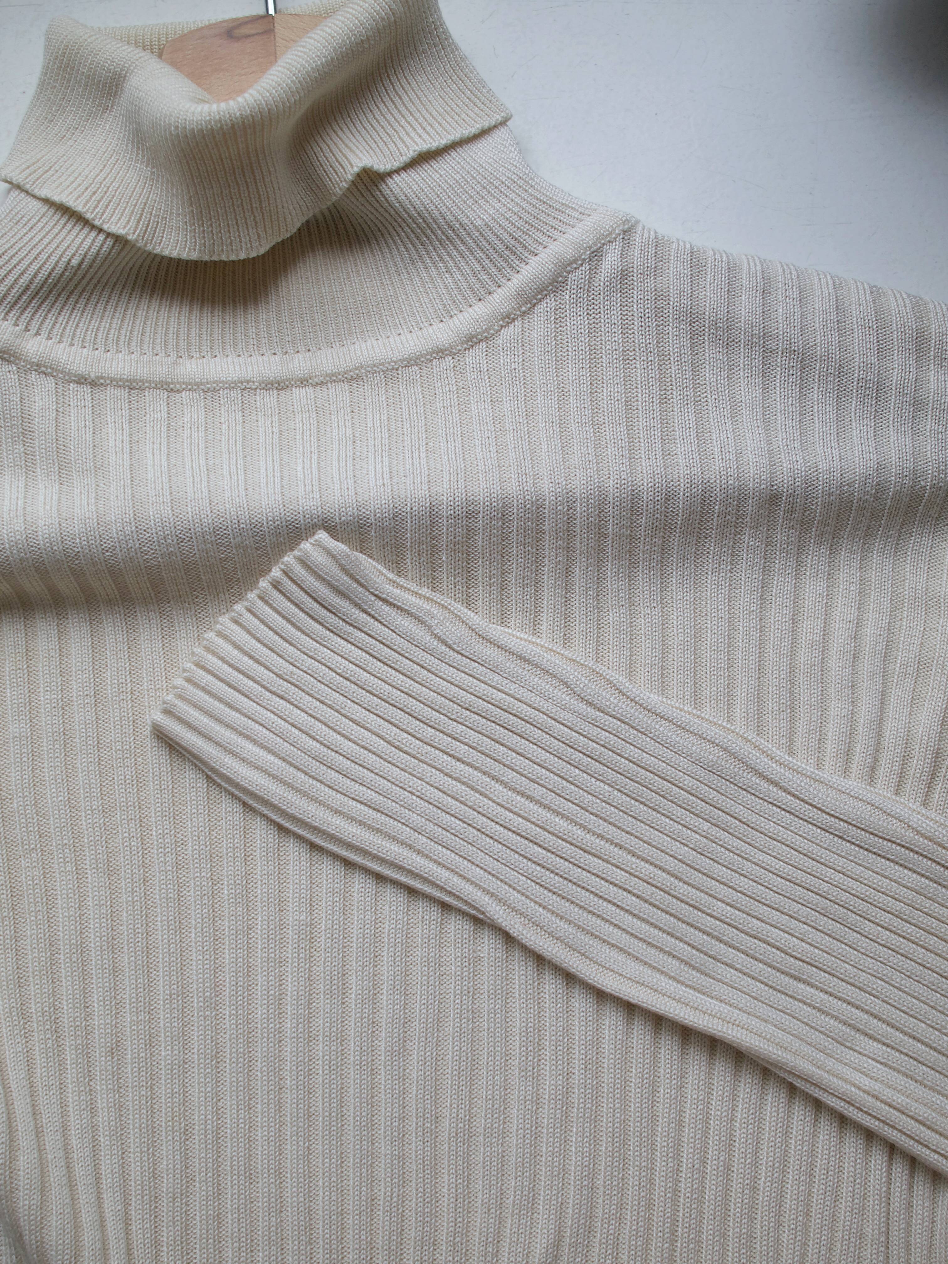 Kremowy jedwabny golf w prążki.