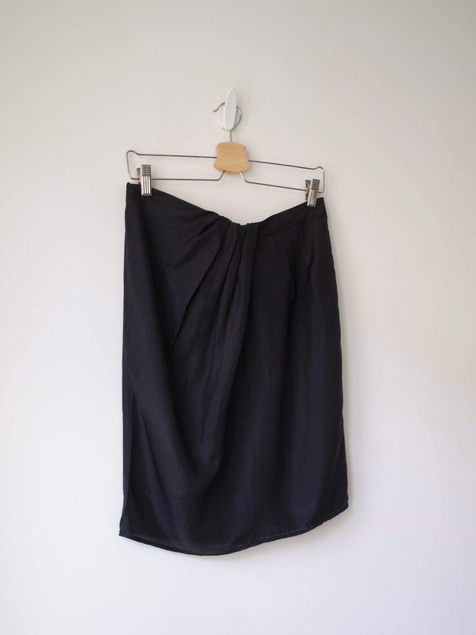 Spódnica z drapowaniem, z tyłu zapinana na zamek.