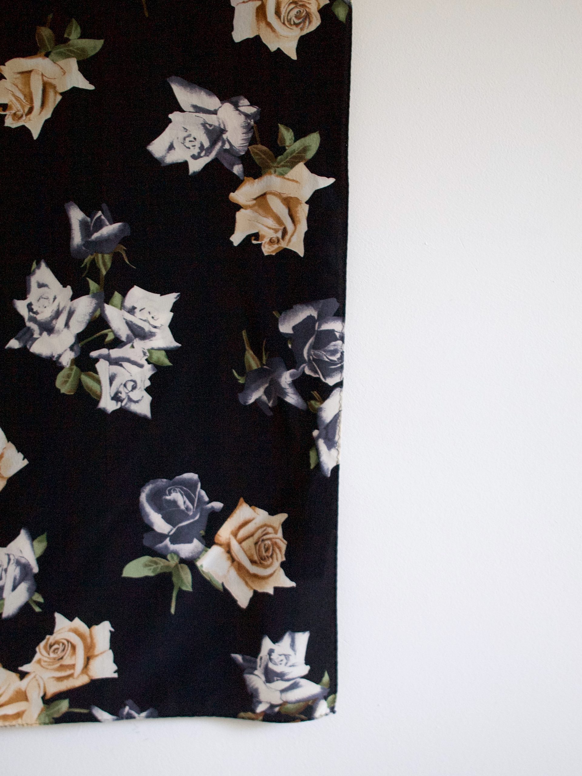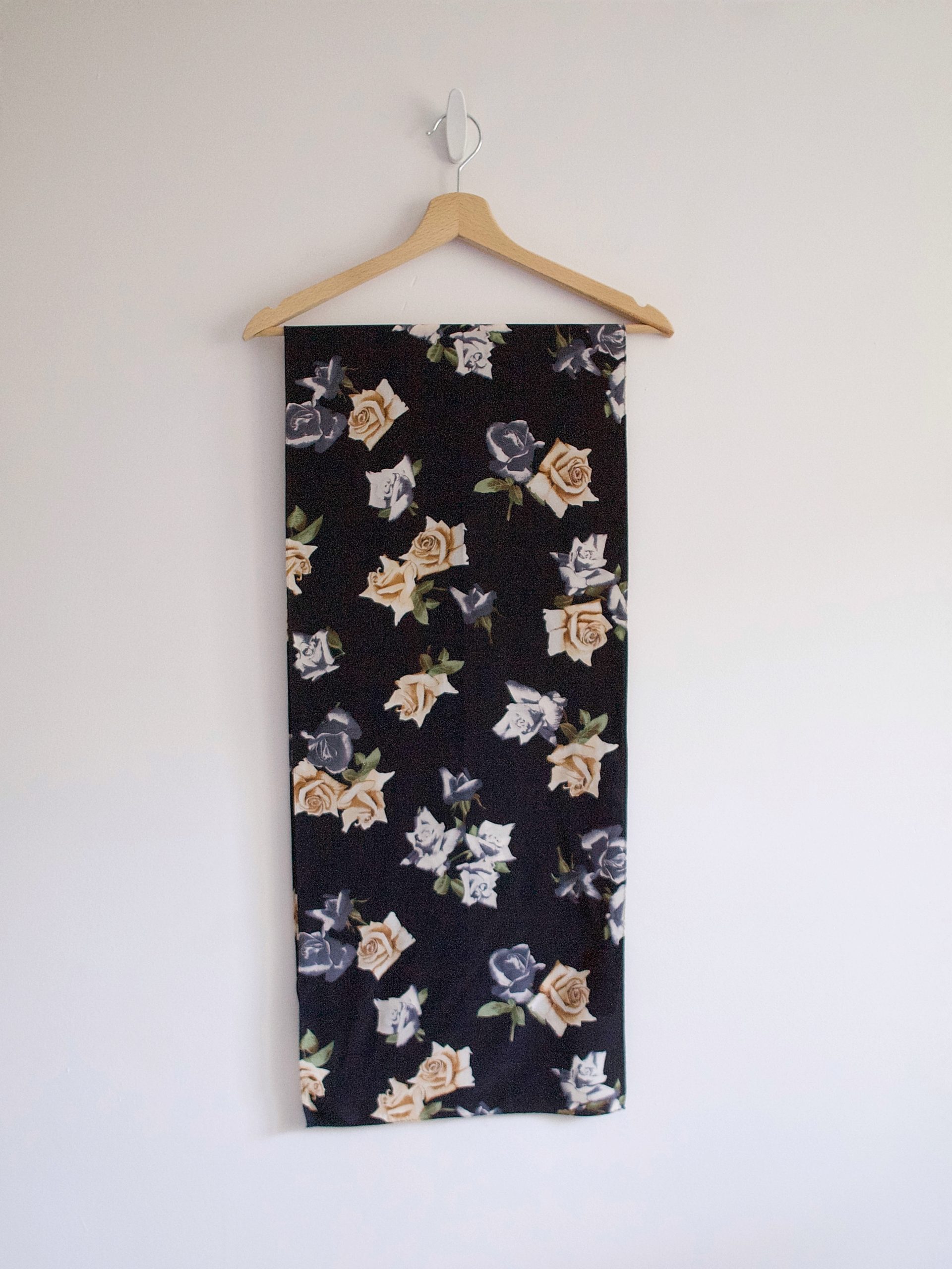 Jedwabny szalik vintage w kwiatowy wzór. Idealny stan. Wymiary: 149*33,5 cm