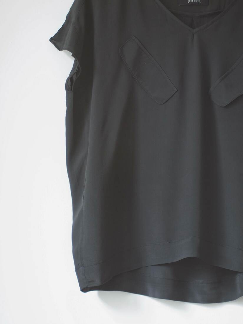 Bluzka o pudełkowym kroju. Wykonana z tkaniny z dużym udziałem jedwabiu, lejąca i miła w dotyku. Rozmiar z metki 38, polecam jako one size. Bez wad.