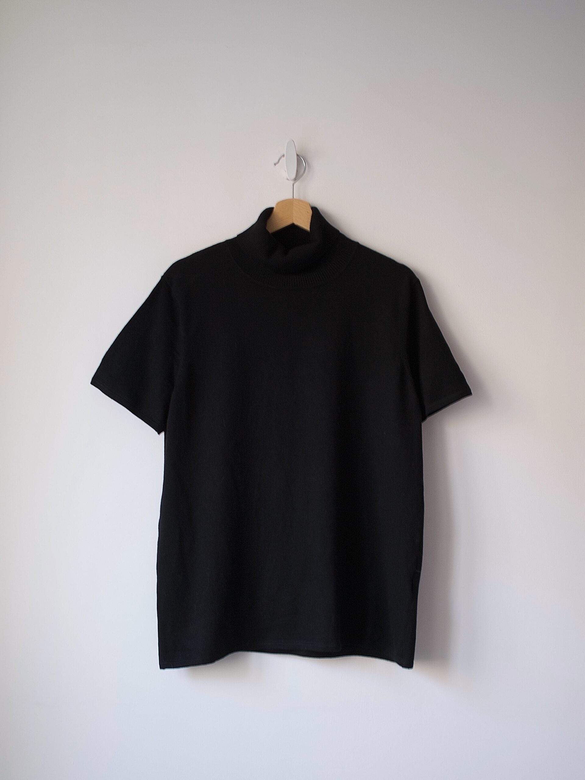 Golf vintage, wykonany z mieszanki jedwabiu oraz bawełny. Rozmiar z metki: 48 Skład: na zdjęciu Stan: bez wad Szerokość w klatce 54,5 cm Długość całkowita 70 cm