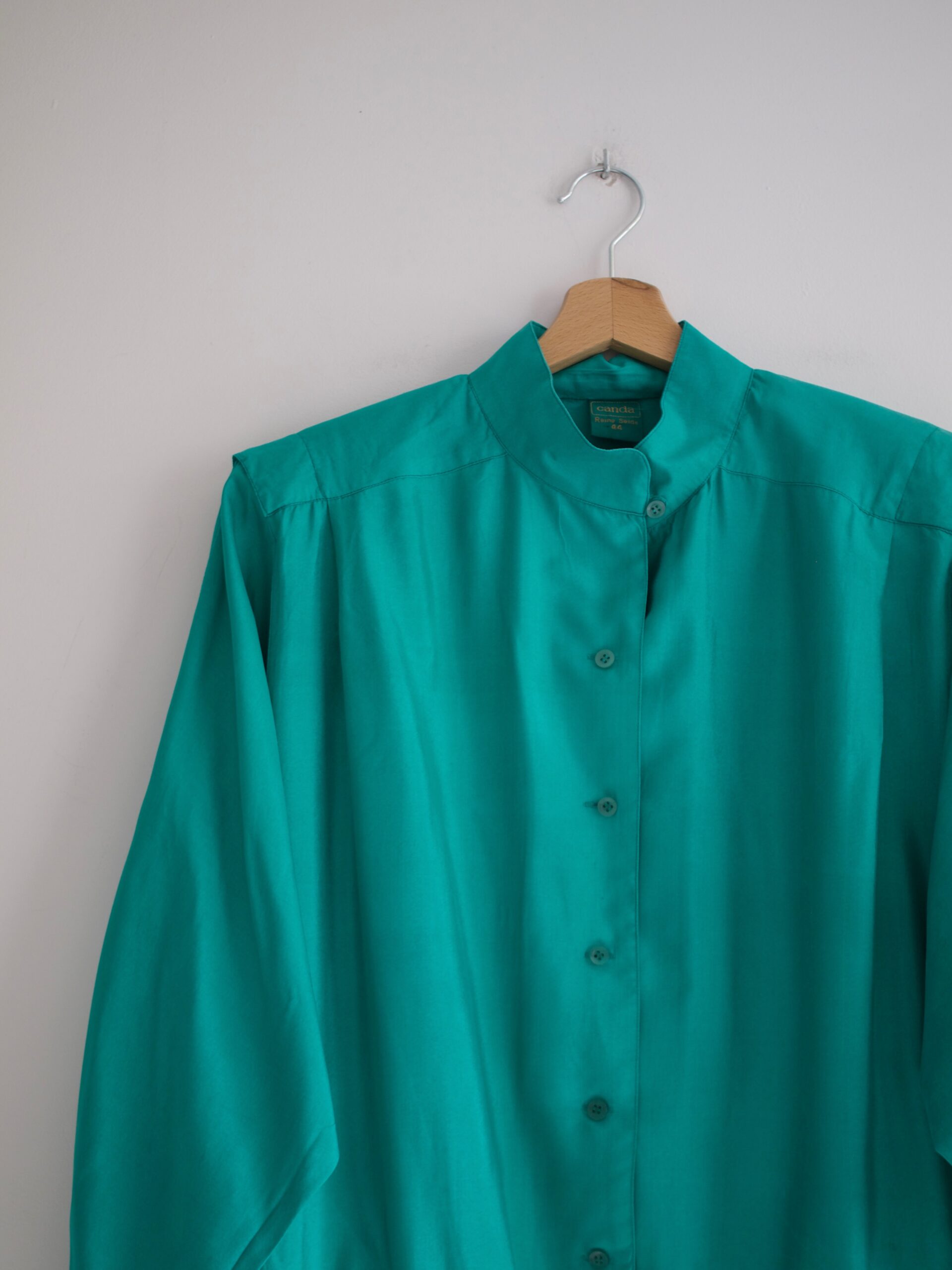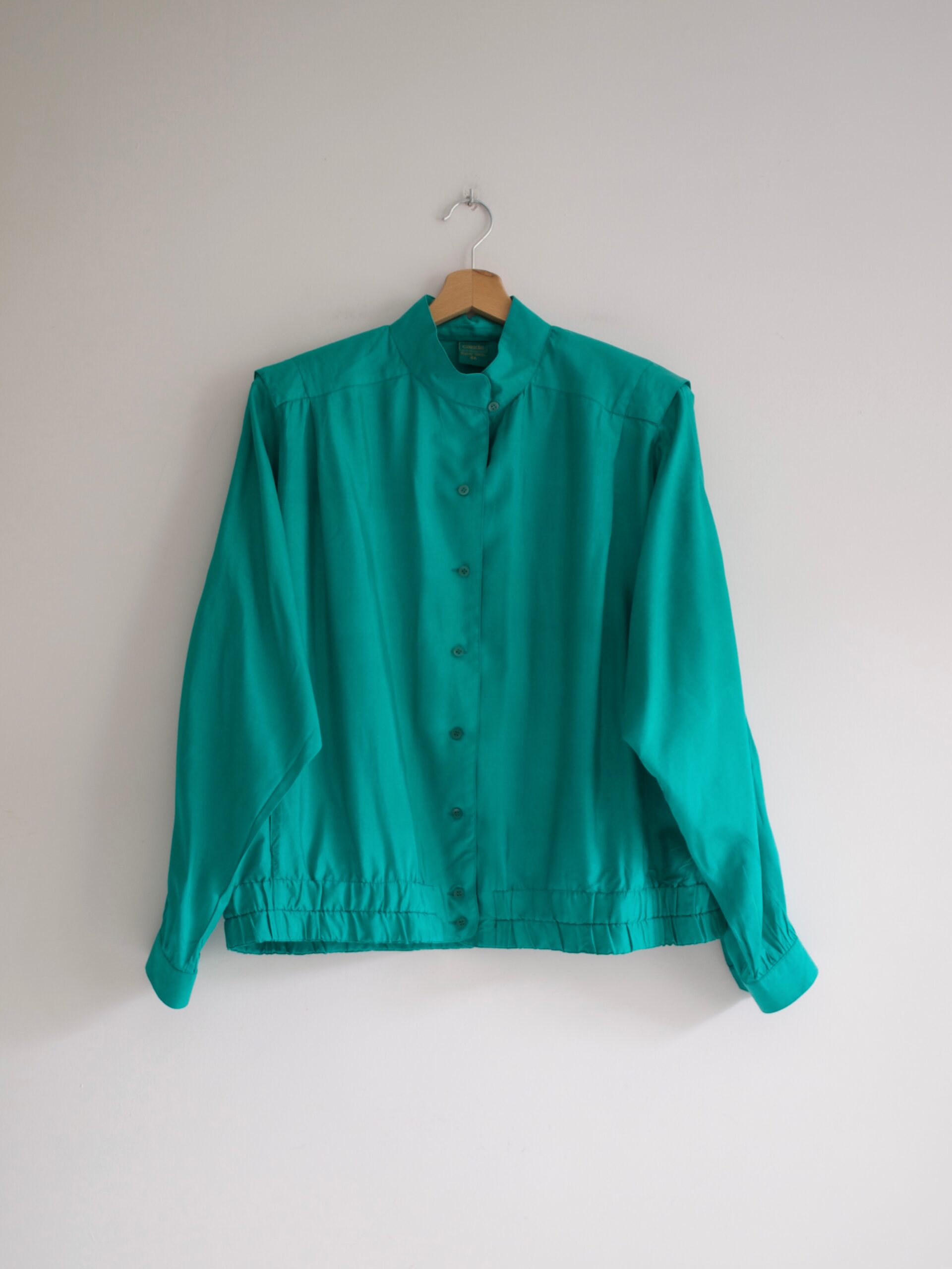 Kremowa koszula vintage z ozdobnymi guzikami i plisami na rękawach. Brak metki ze składem (prawdopodobnie poliester), materiał prawie nie gniecie się. Brak metki z rozmiarem, proszę sprawdzać wymiary. Bez wad.