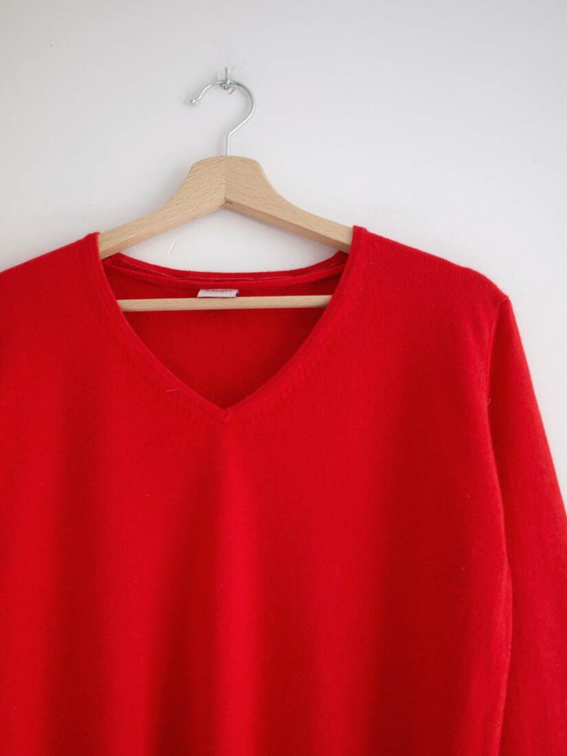 Bardzo miły w dotyku sweter jedwabno-kaszmirowy. KOlor nieco mniej intensywny niż na zdjęciach.