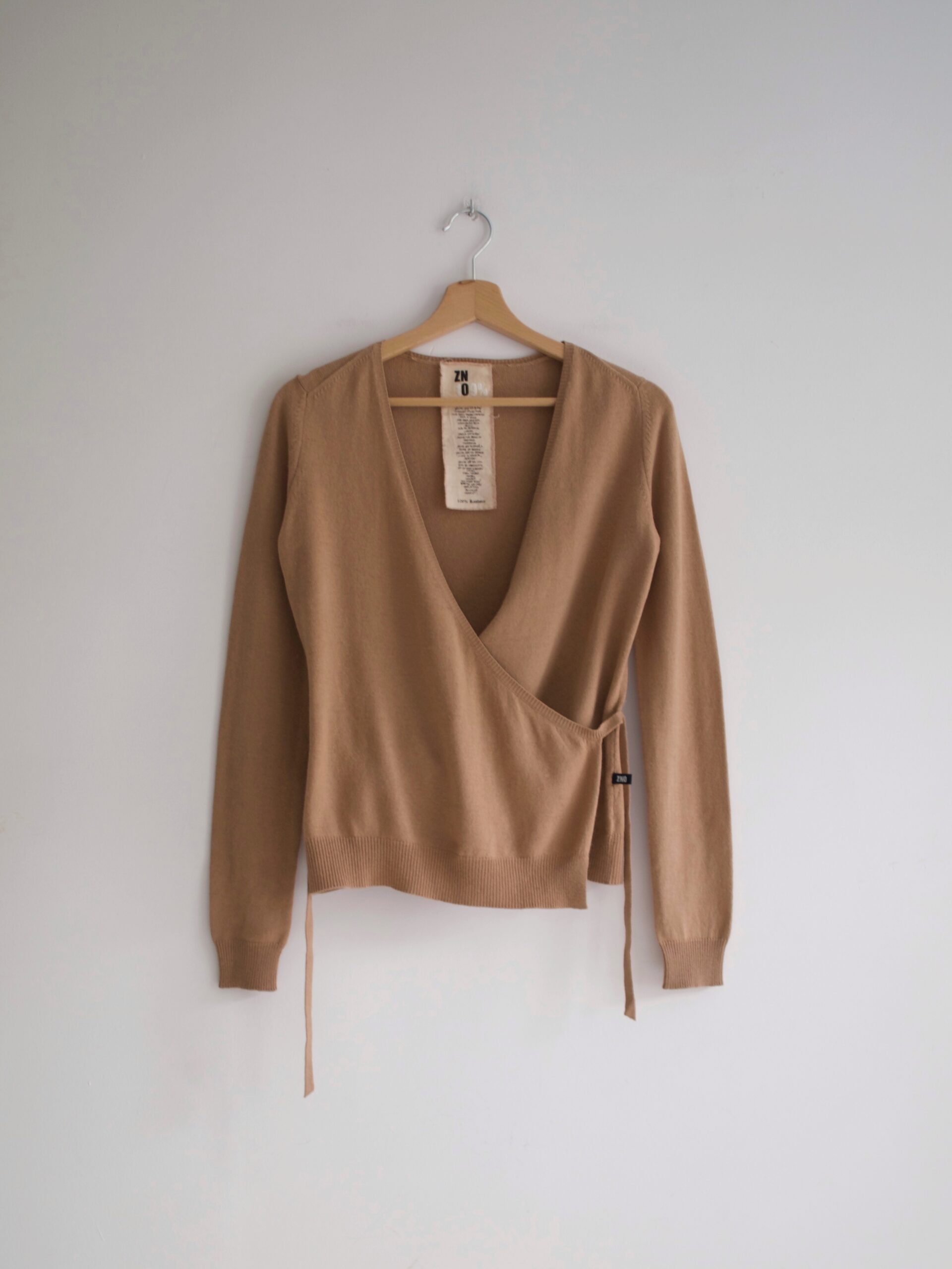 Sweter o kopertowym fasonie. Rozmiar: 40, prawdopodobnie włoska rozmiarówka, więc polecam na S Skład: 55% jedwab, 45% kaszmir Stan: idealny Szerokość w klatce 43 cn Długośćcałkowita 55 cm