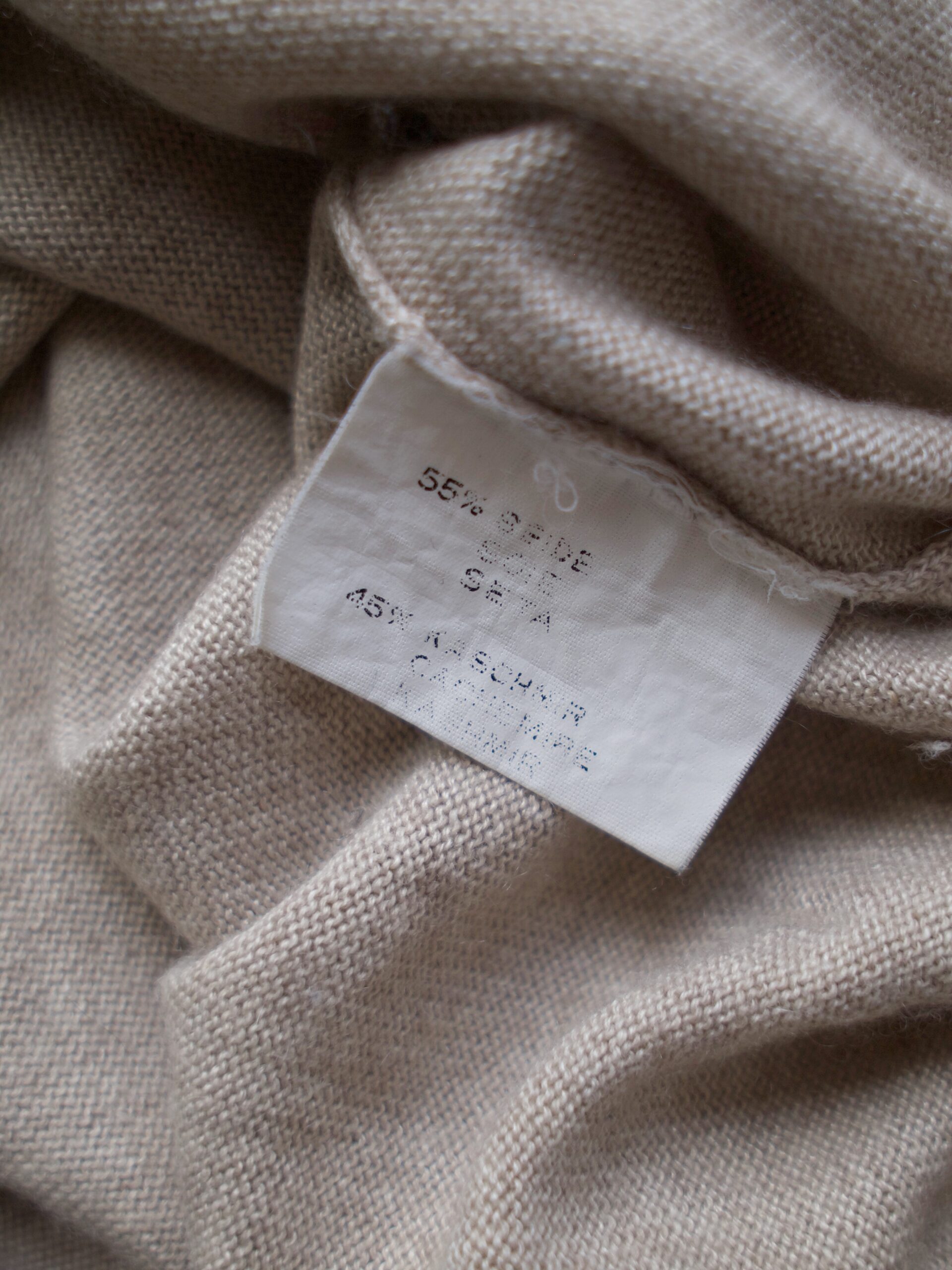 Klasyczny sweter M&S z dekoltem w serek. Skład to 100% kaszmir, bardzo dobry stan, jest minimalnie sfilcowany, nie jest to zauważalne, po prostu jest trochę sztywniejszy.