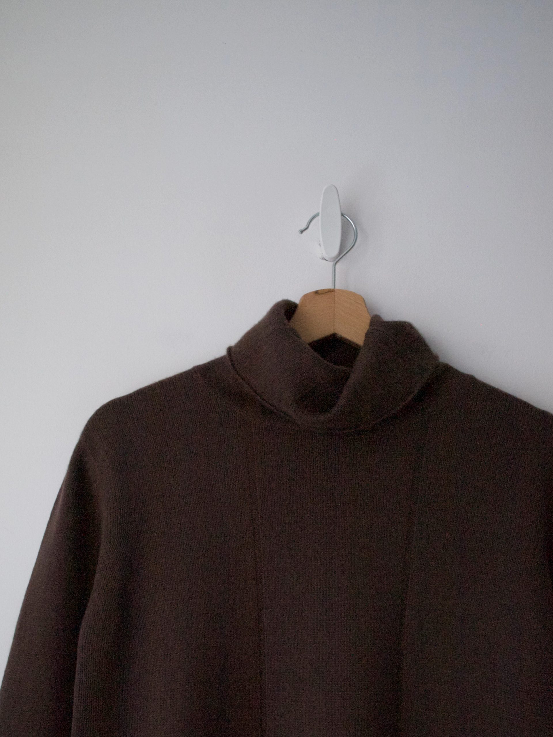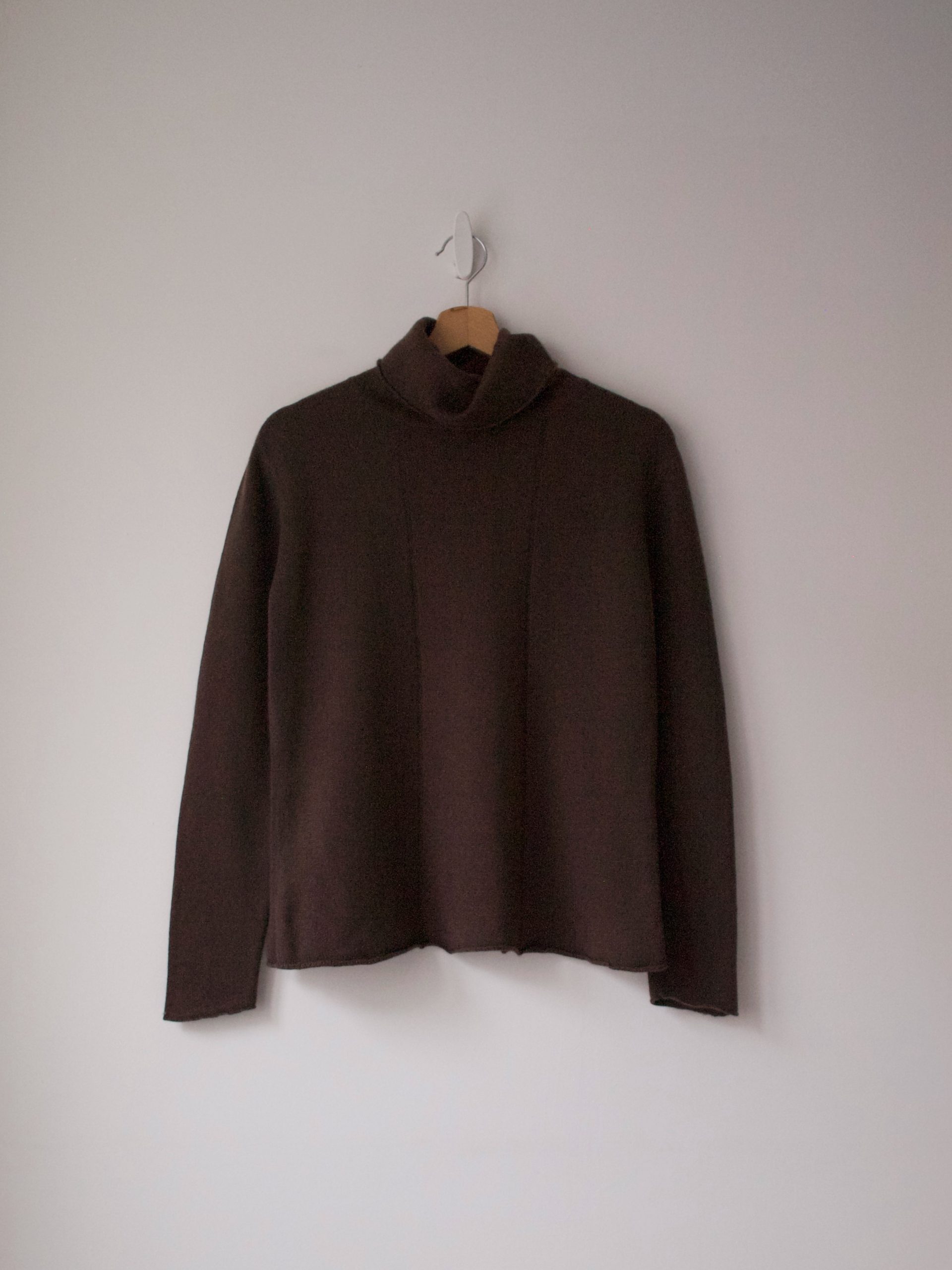 Czekoladowy golf vintage, wykonany z miłej w dotyku mieszanki jedwabiu oraz kaszmiru.