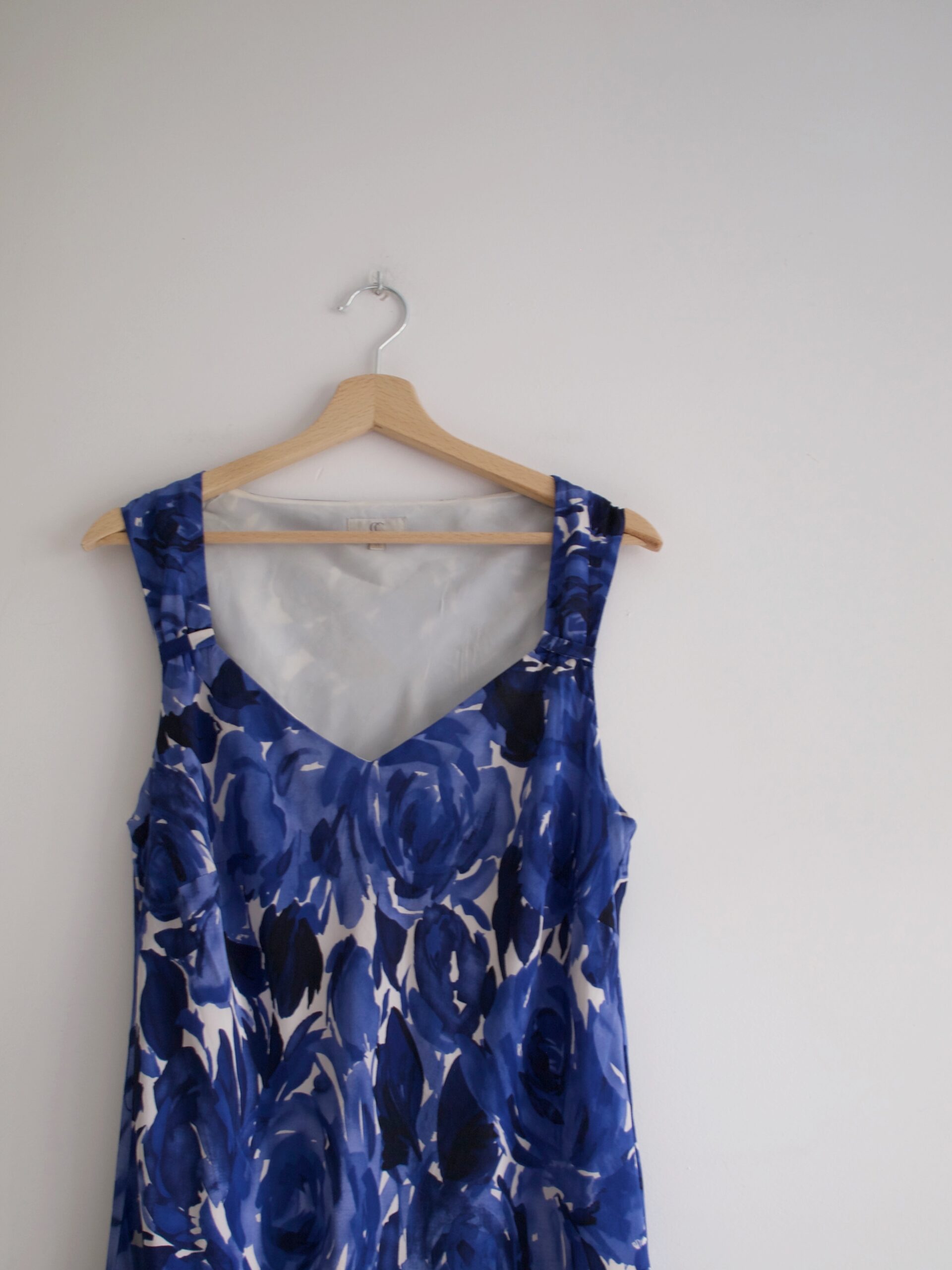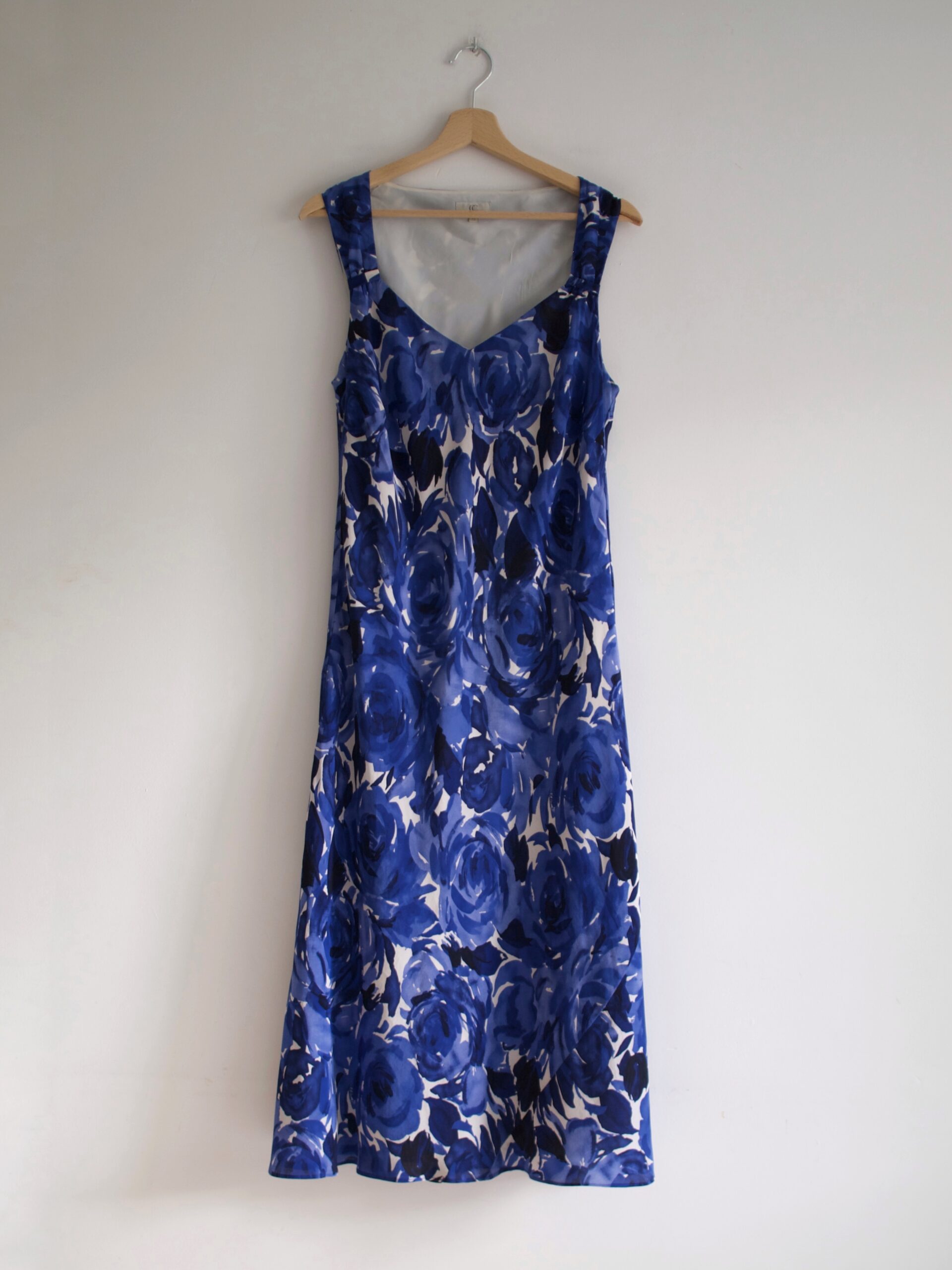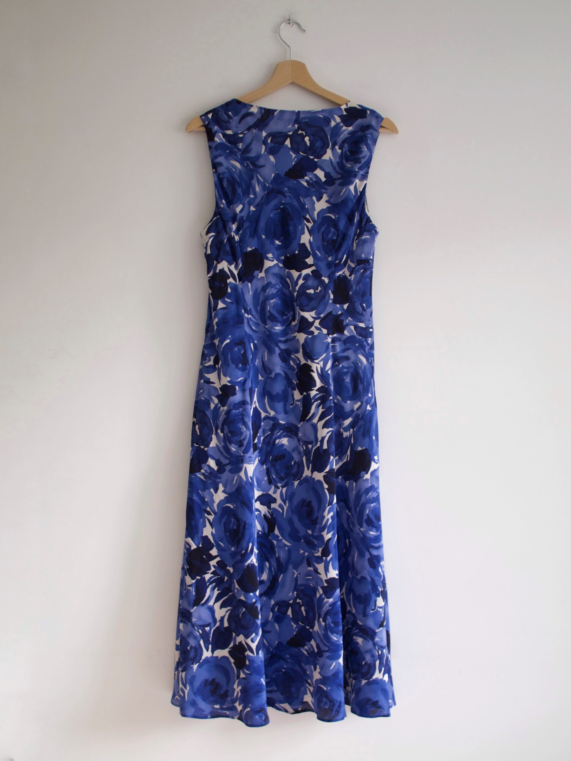 Długa jedwabna sukienka. Rozmiar: najlepiej na M-mniejsze L Skład: 100% jedwab, podszewka acetat Stan: bez wad Szerokość w klatce 47 cm