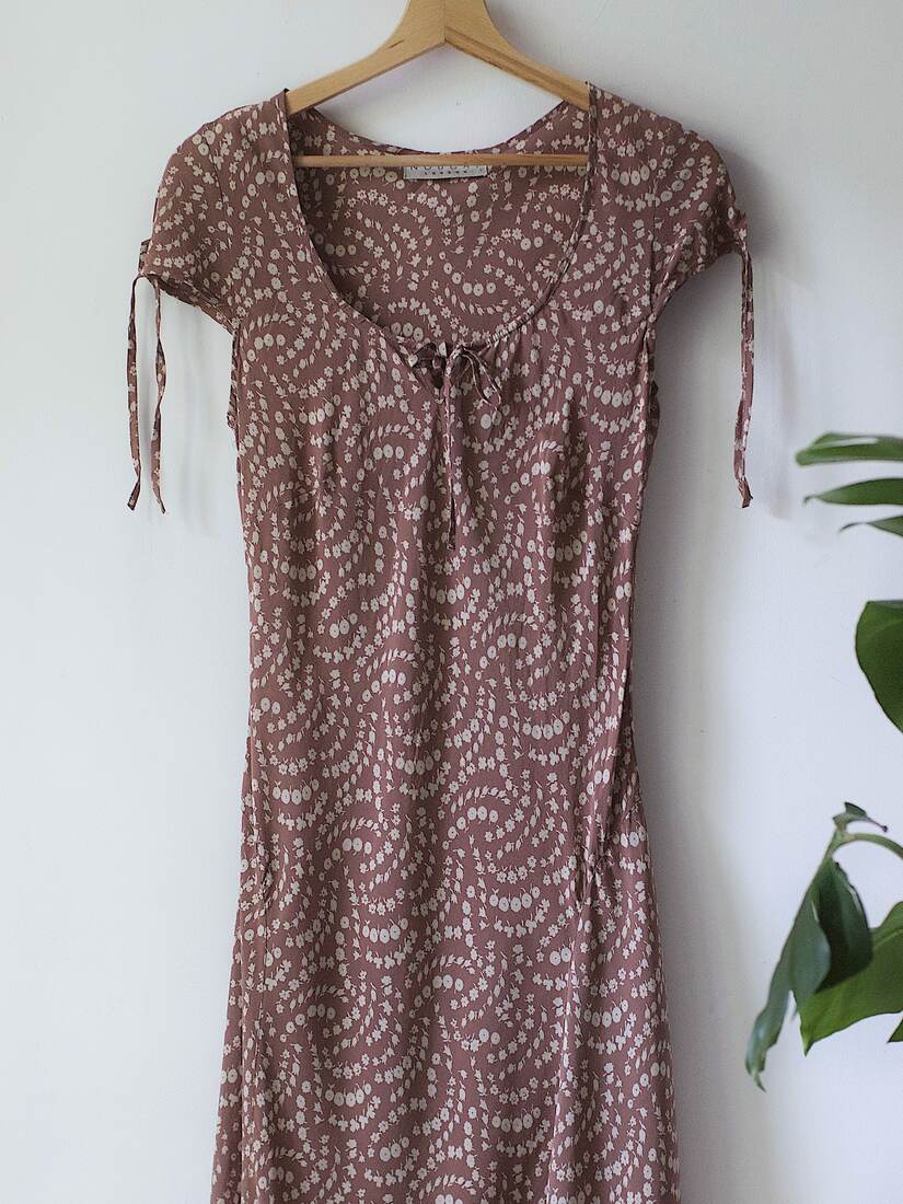 Jedwabna sukienka w drobne kwiaty. Pięknie podkreśla sylwetkę. Rozmiar z metki 1, będzie pasować na XS-S. Idealny stan.