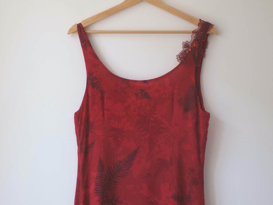 Jedwabna sukienka w orientalnym stylu. Prosty krój, z tyłu zapinana na zamek. Będzie pasować na S-M, polecam dla osoby wysokiej. Wymiary poniżej, bez wad.