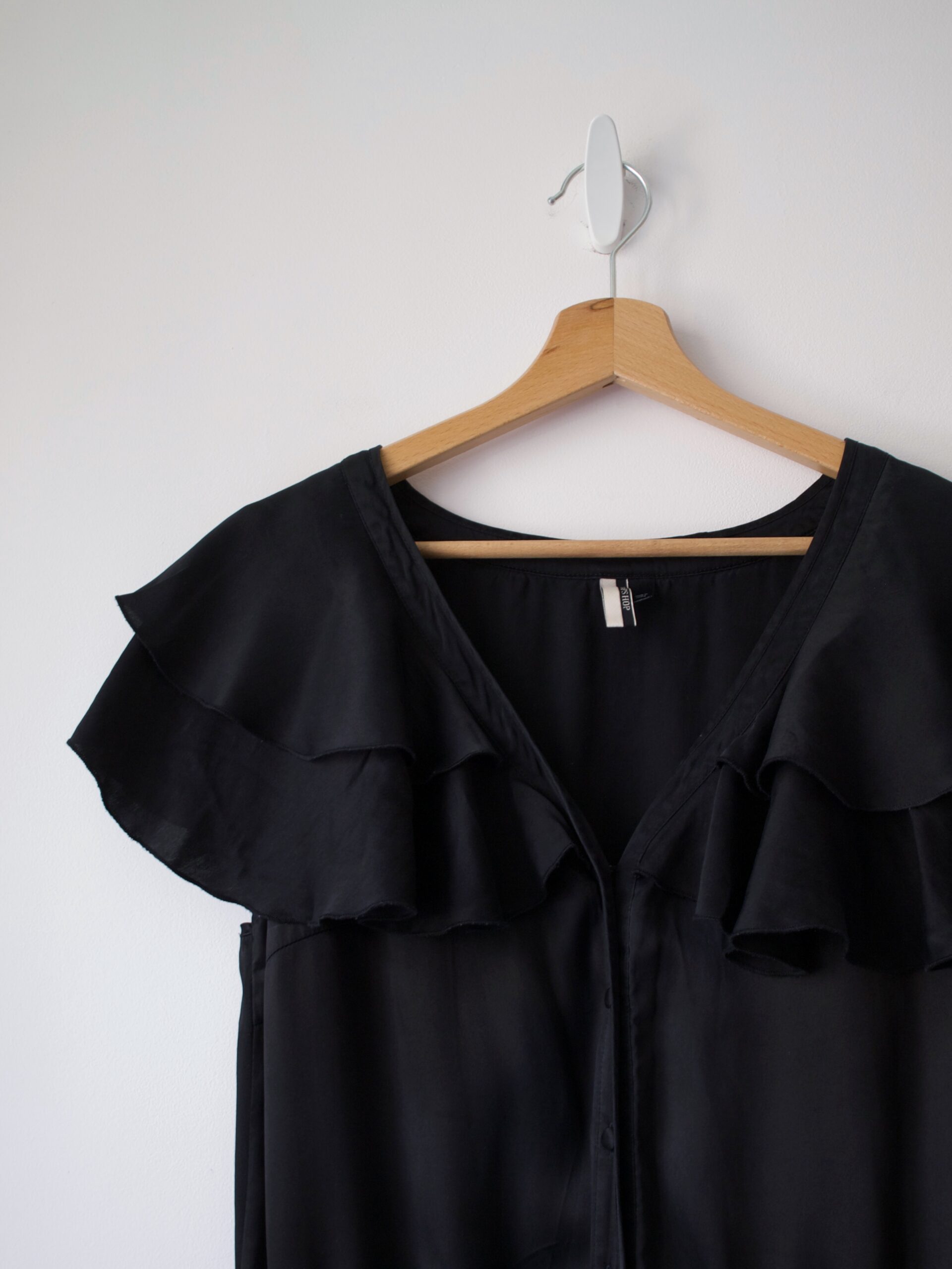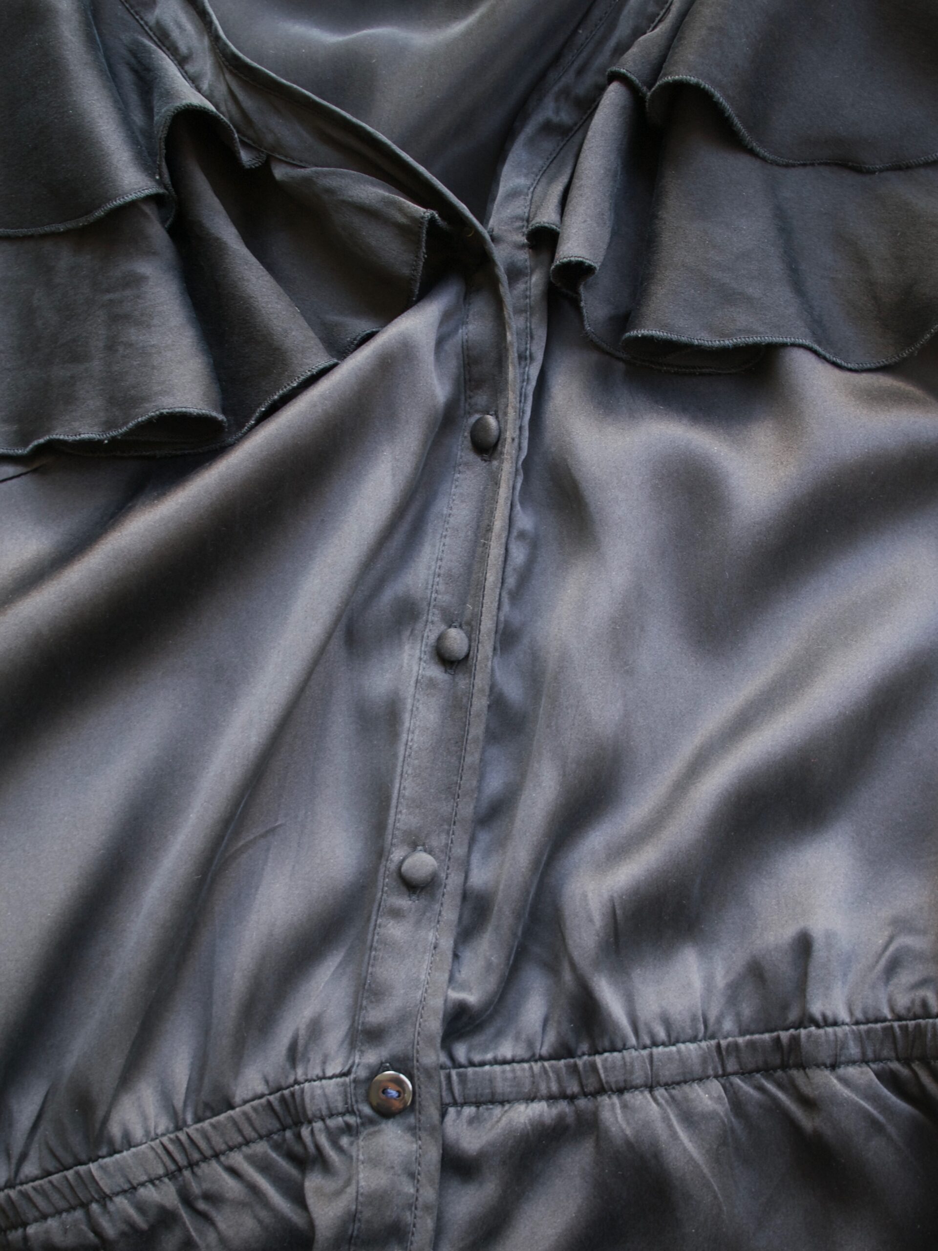 Jedwabny kombinezon. Górna część zapinana na guziki powlekane jedwabną tkaniną.