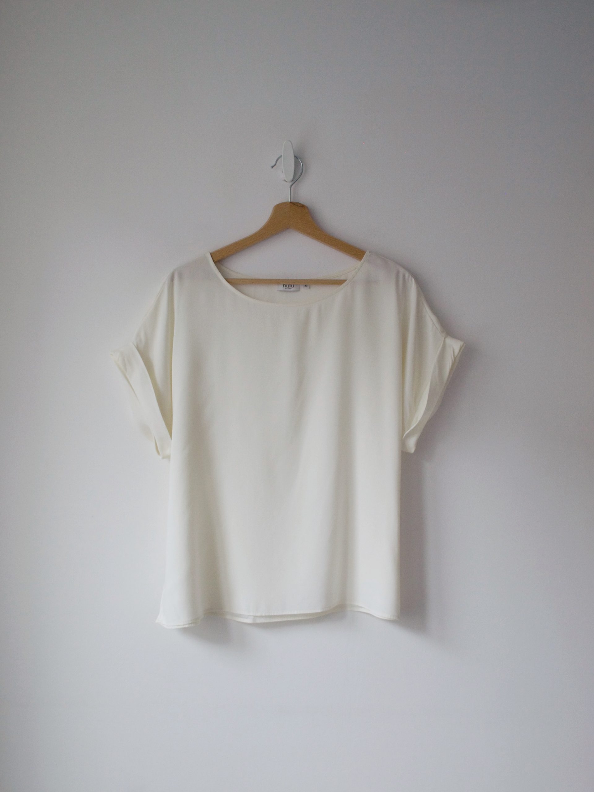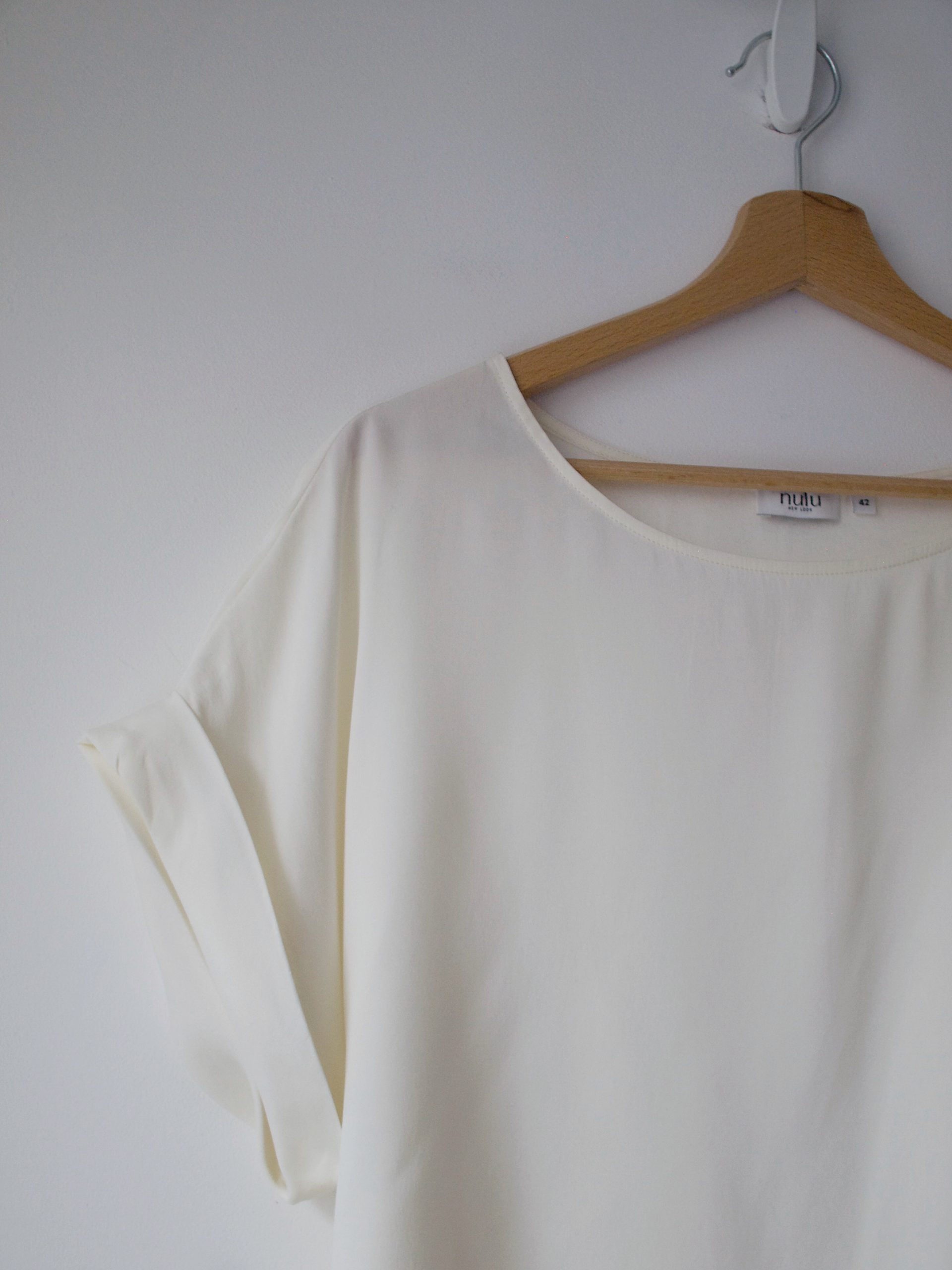 Jedwabna bluzka o pudełkowym fasonie. Gładka strona jest wewnątrz, co sprawia że bluzka jest bardzo przyjemna w noszeniu.