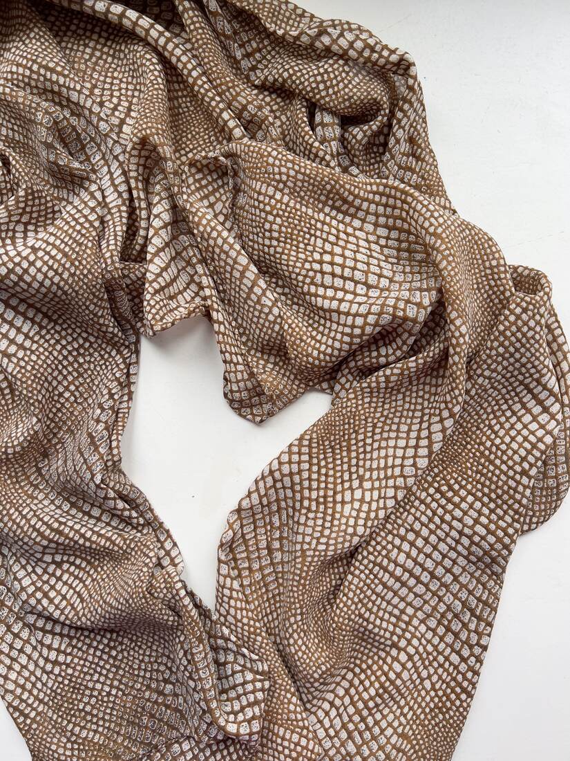 Jedwabny szalik vintage w animalistyczne wzory. Wymiary: 138*42 cm. Bez wad.