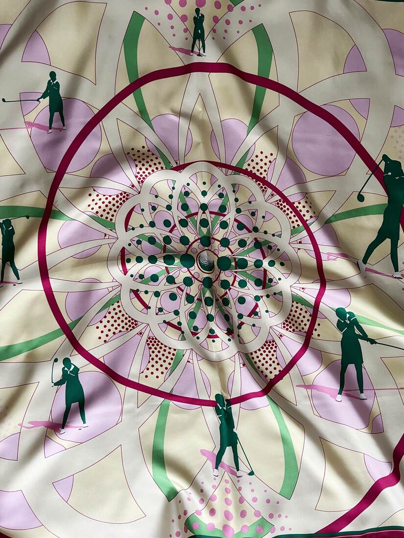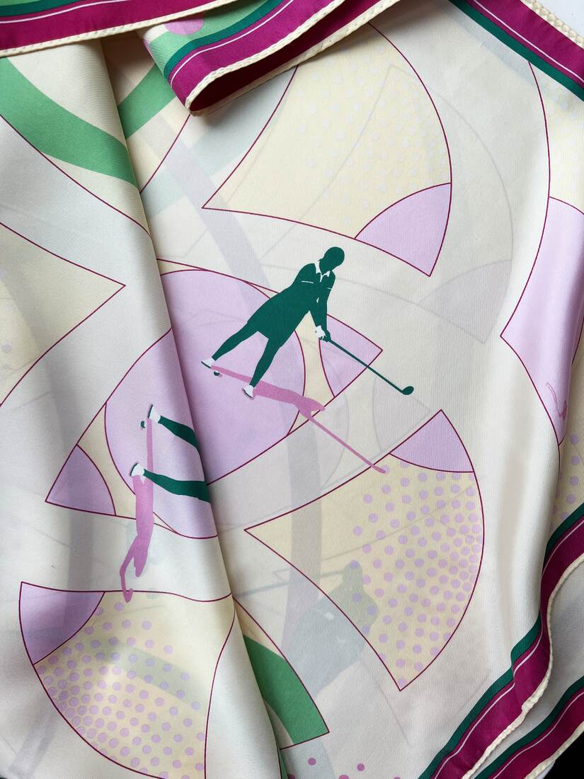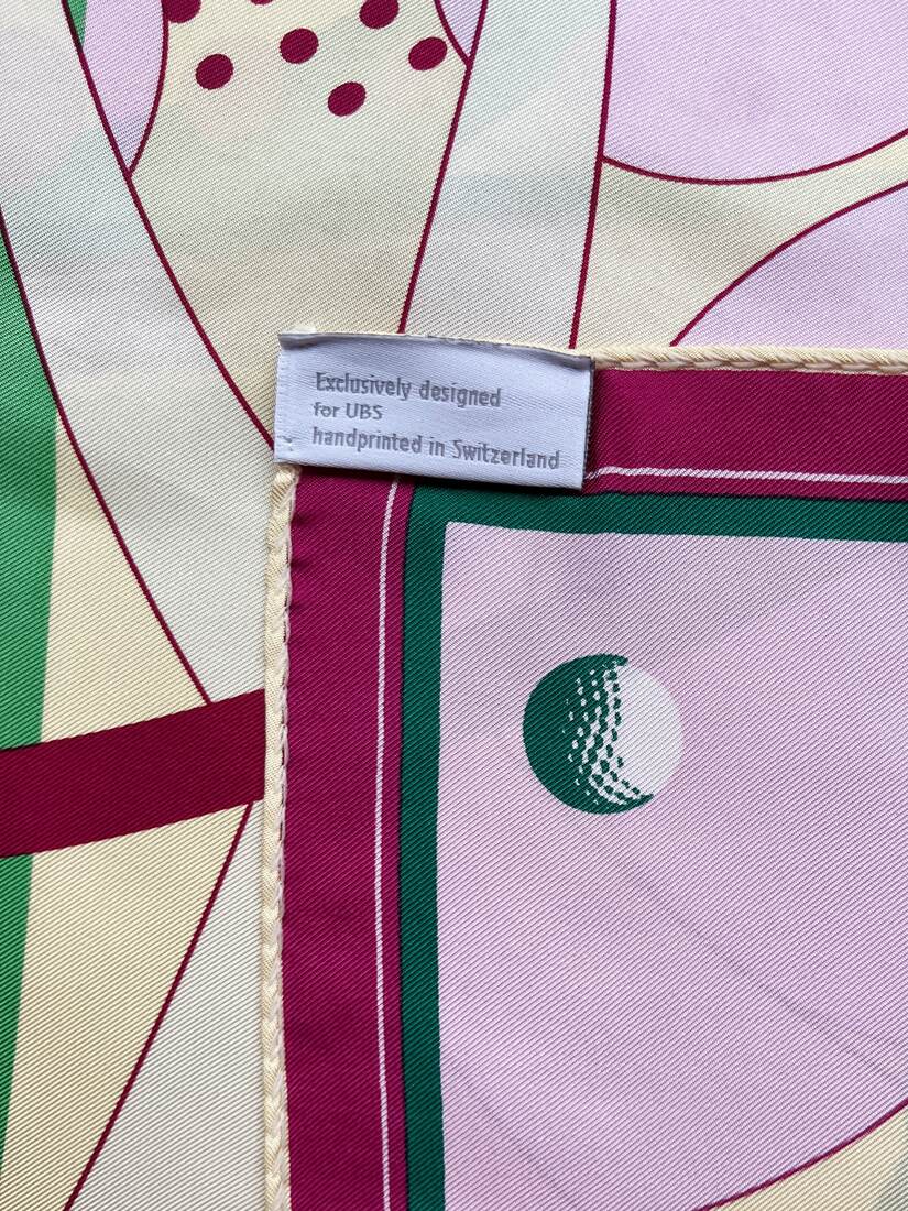 Bardzo duża apaszka vintage. W 100% wykonana z gęstego jedwabiu, ręcznie farbowana oraz rolowana w Szwajcarii. Bardzo dobry stan. Wymiary: 98*97 cm