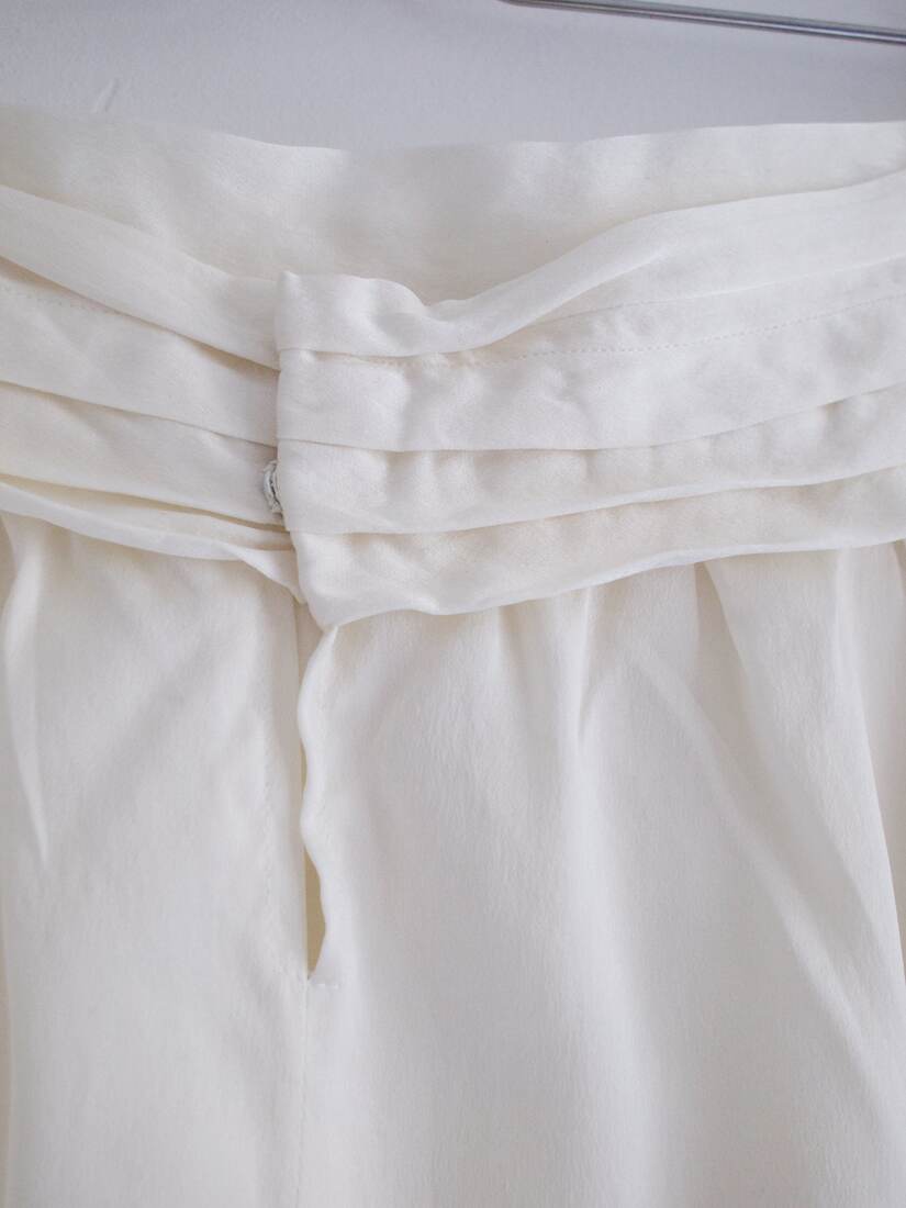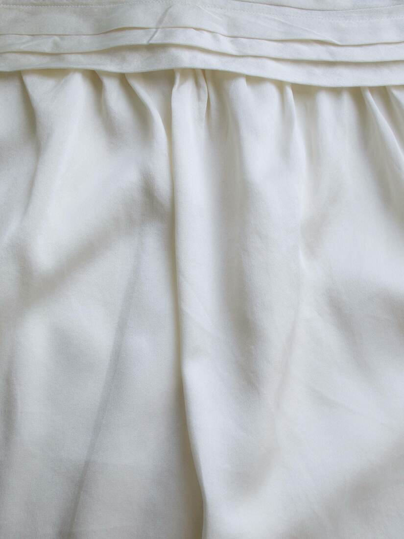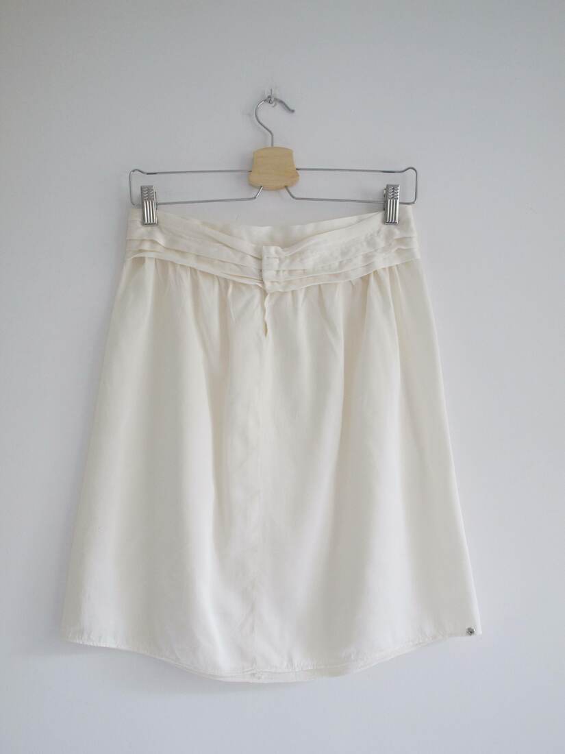 Jedwabna spódnica, szyta według czyjegoś projektu. Zapinana z tyłu na napy i haftki.