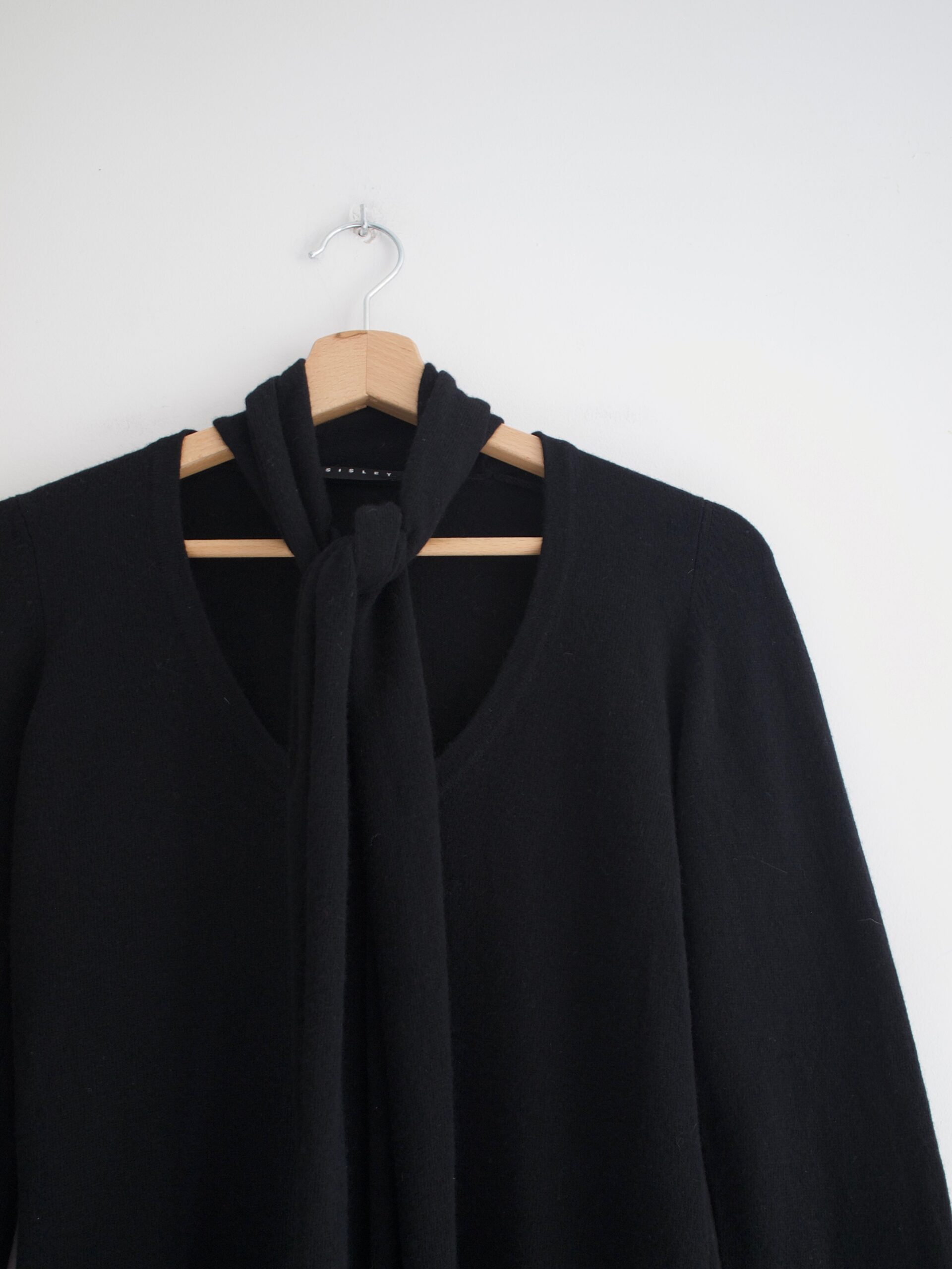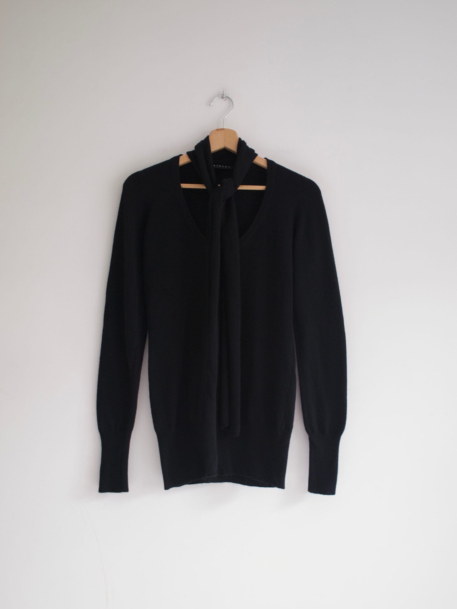 Klasyczny sweter M&S z dekoltem w serek. Skład to 100% kaszmir, bardzo dobry stan, jest minimalnie sfilcowany, nie jest to zauważalne, po prostu jest trochę sztywniejszy.