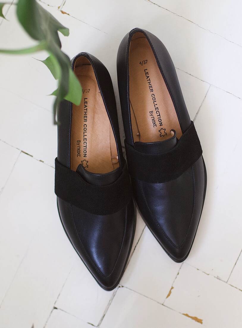 Minimalistyczne skórzane mokasyny z noskiem w szpic, idealne do wielu stylizacji. Rozmiar 37, nowe.