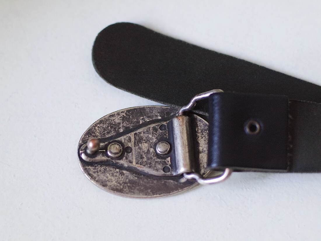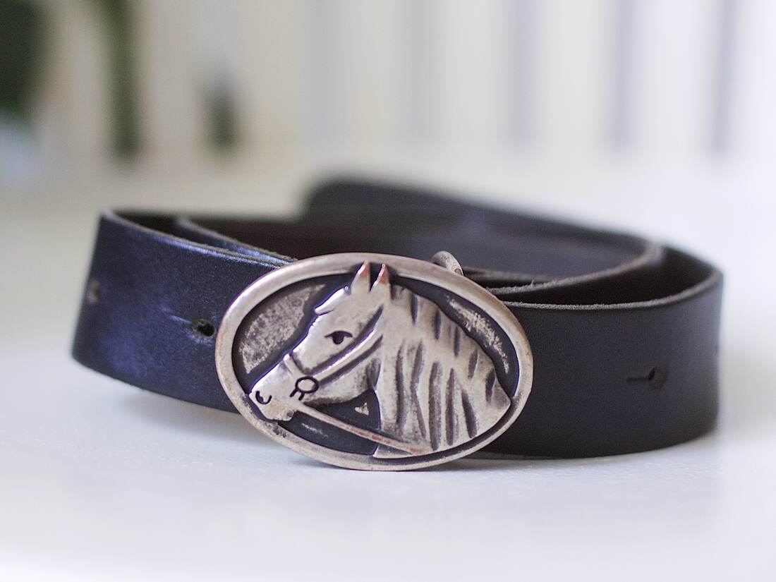 Skórzany pasek vintage z ozdobną klamrą. Idealny stan, rozmiar 70.