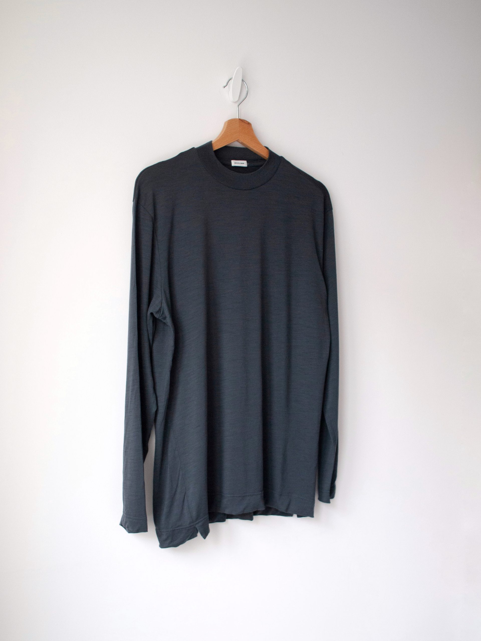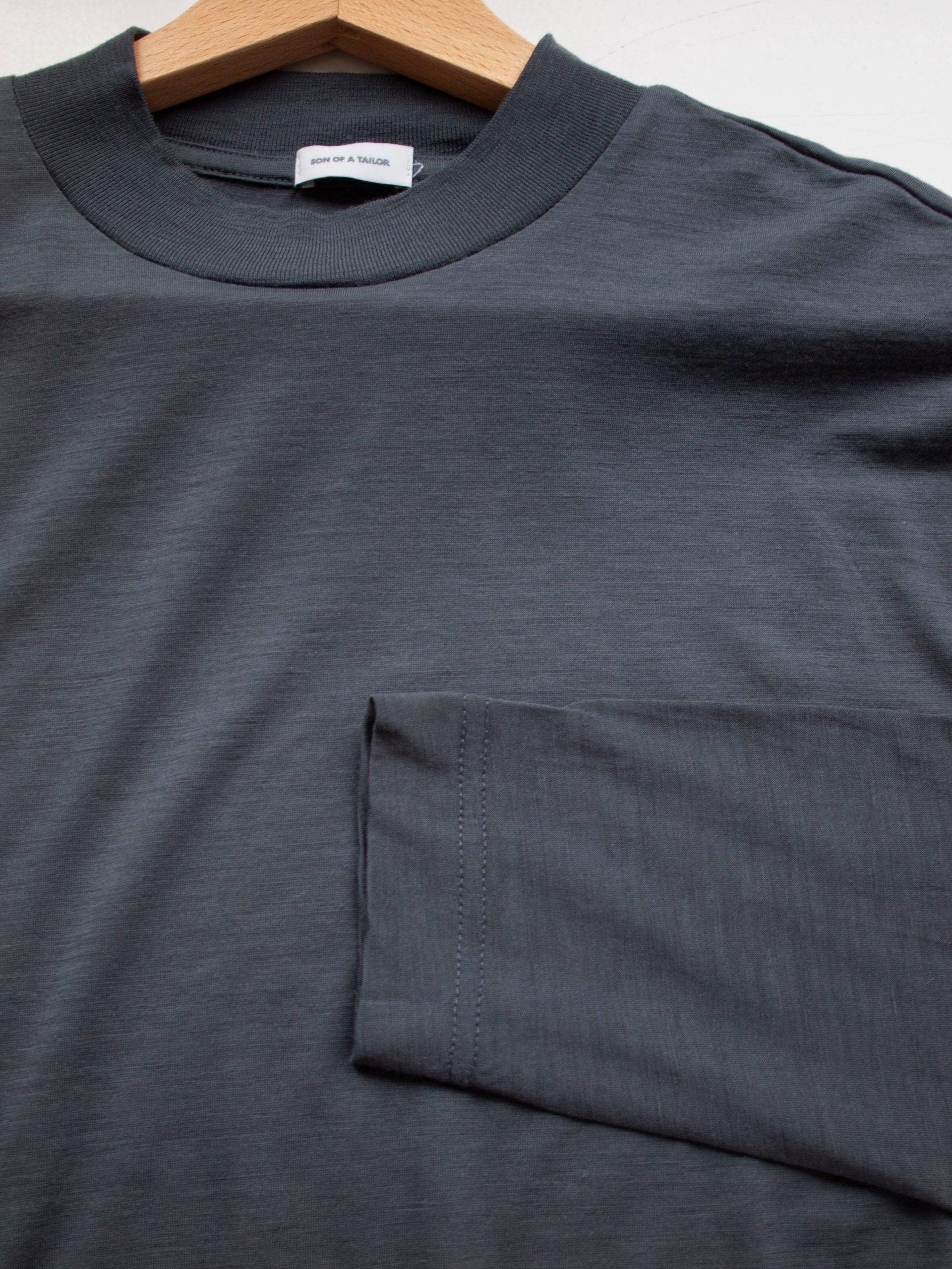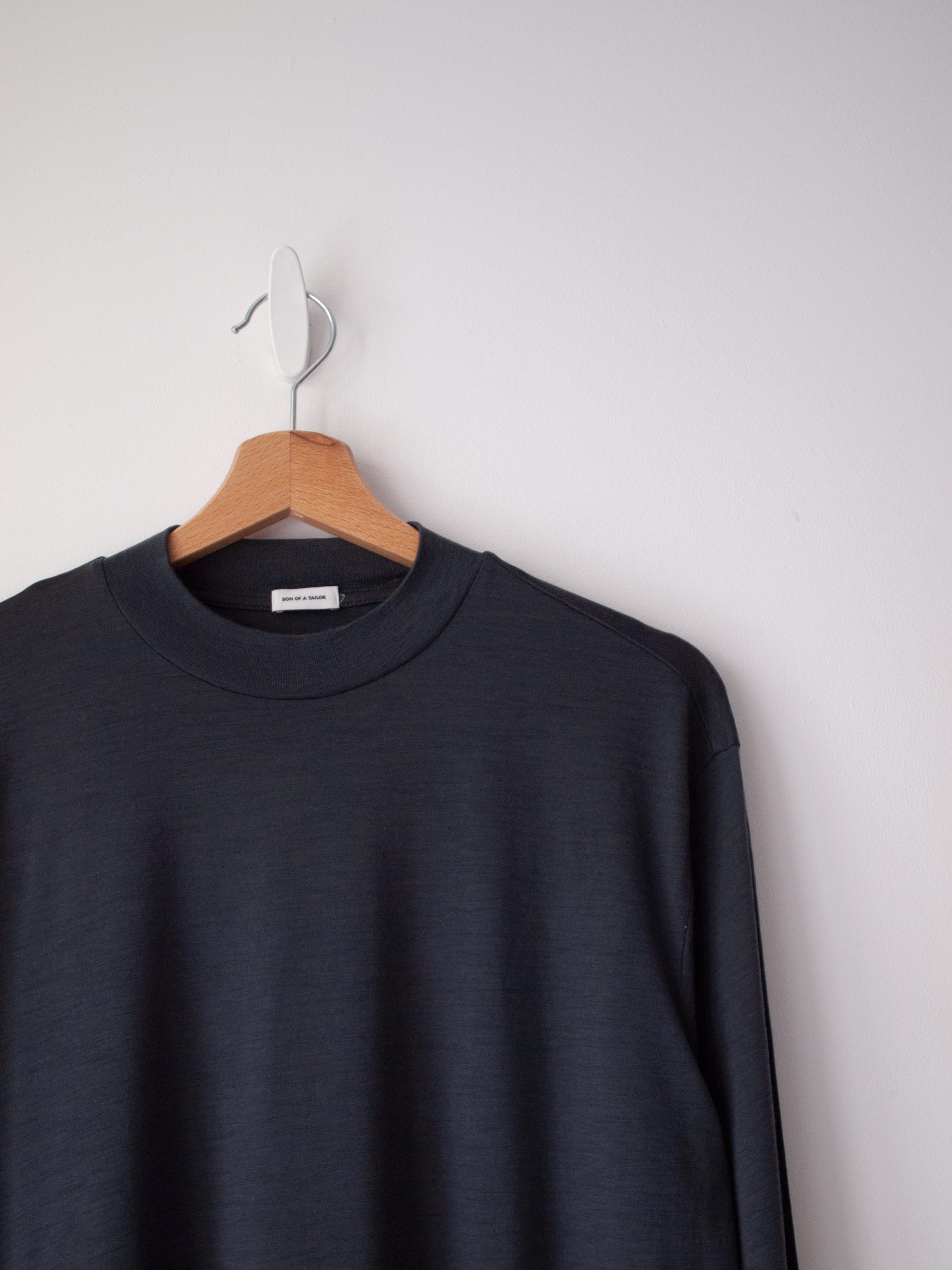 Wełniany longsleeve duńskiej marki Son of Tailor, znanej z tworzenia basicowych ubrań najwyższej jakości. Wykonany z miękkiej, oddychającej wełny – idealny jako pierwsza warstwa w chłodniejsze dni. Kolor grafitowy.